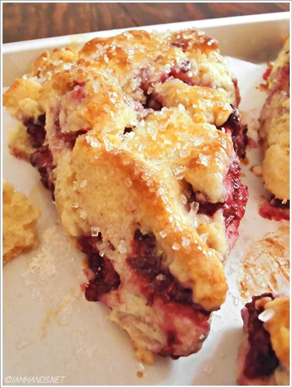 A moist and delicious blackberry scone topped with a honey butter glaze.