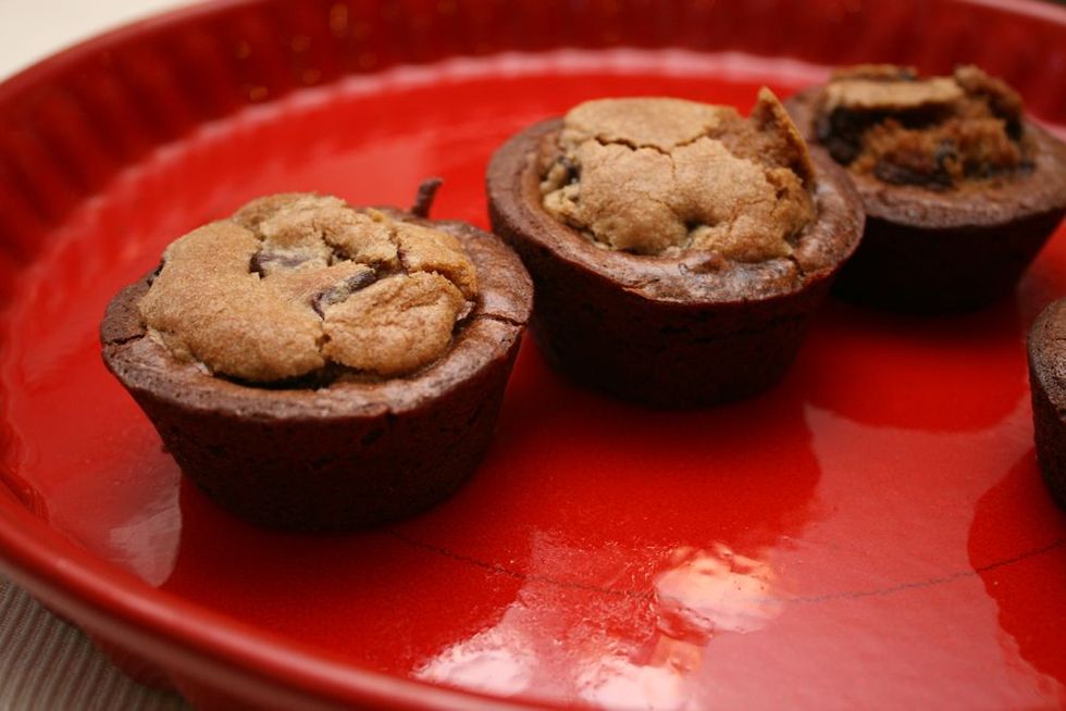 1 scoop of brownie batter + 1 scoop of cookie dough in a muffin pan = Brookies!