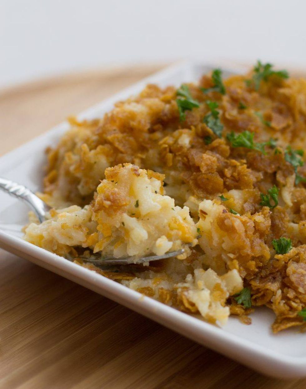 Use a spoon or fork to break up any large chunks of frozen hash browns that may be stuck together