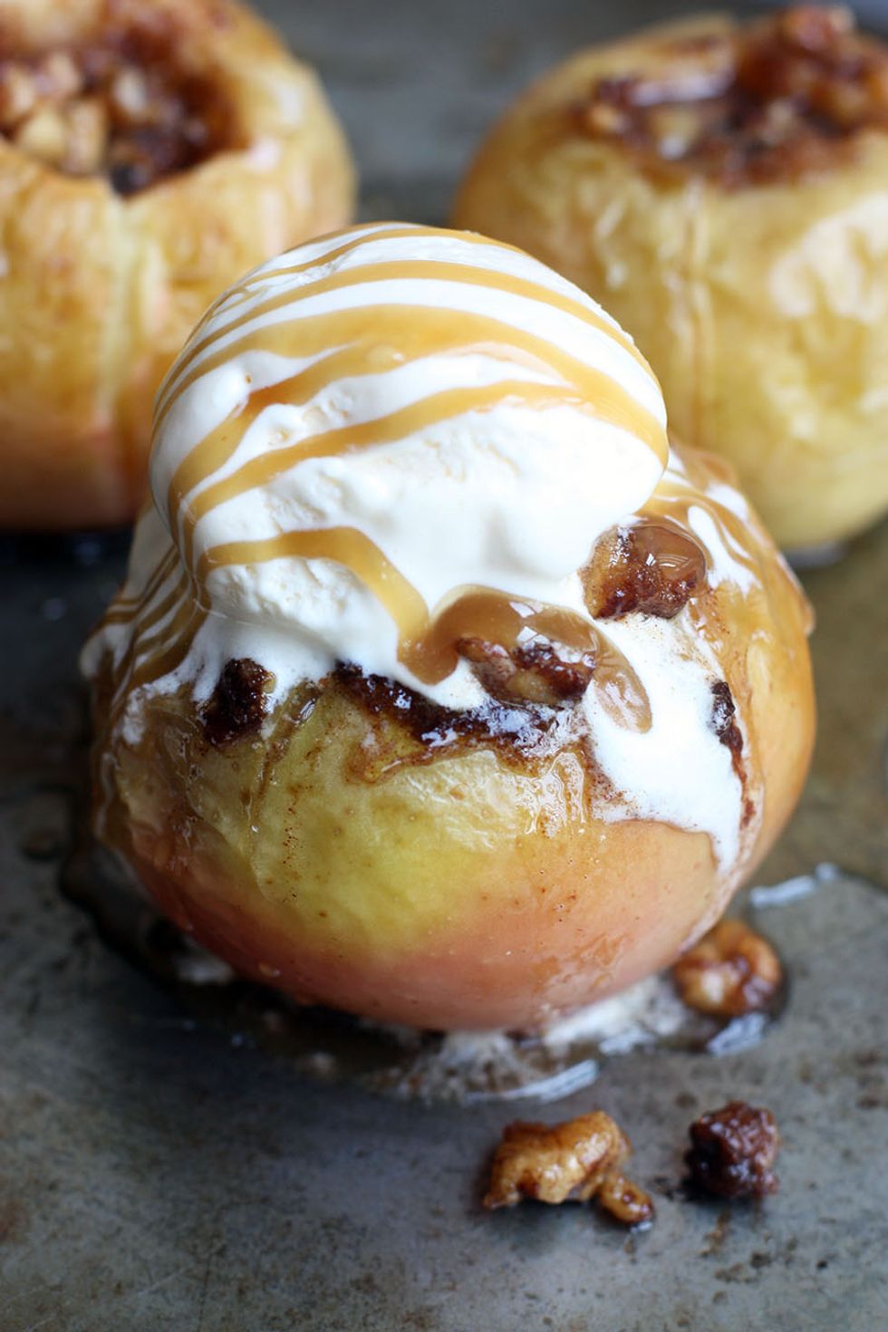 Tender baked apples with a brown sugar pecan filling. The perfect healthy treat! Top with low fat ice cream and caramel, if desired!