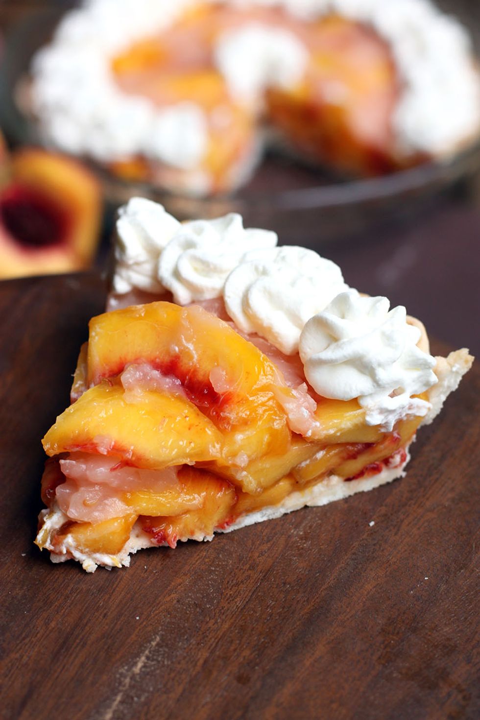 My favorite peach pie uses fresh peaches and is no-bake! Perfect for summer.