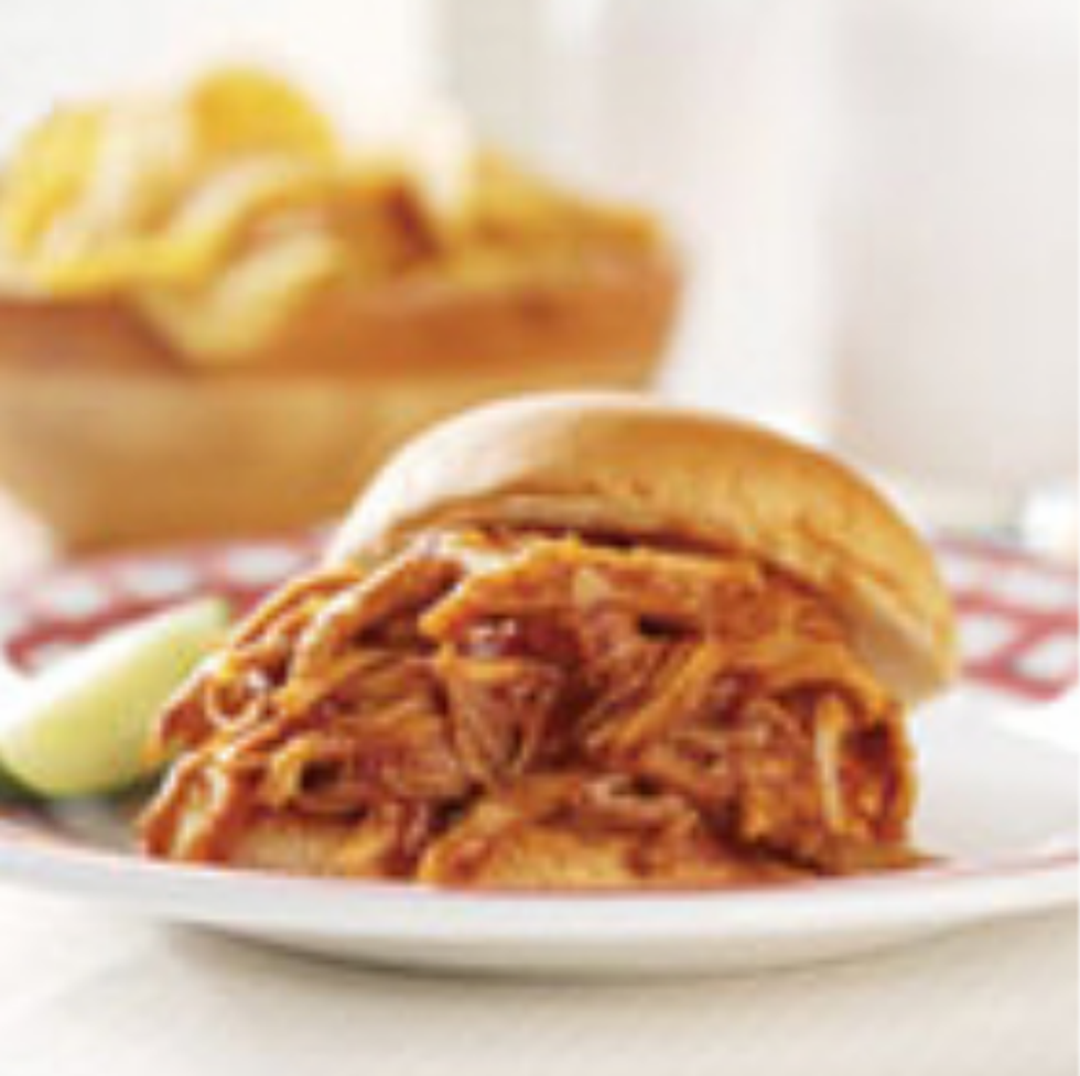 Serve the BBQ chicken on buns, topped with shredded cheese.