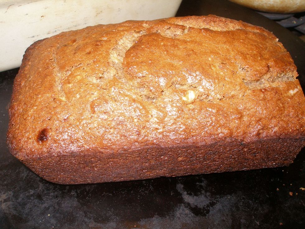 Place batter into greased loaf pan. Bake 20 minutes.