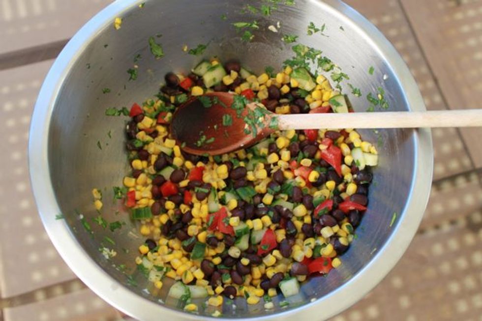 Drain cans of beans and corn and add all the remaining ingredients. Stir and chill at least an hour or until ready to serve. You can serve this as a side dish with quesadillas or barbecued meat. We cooked...