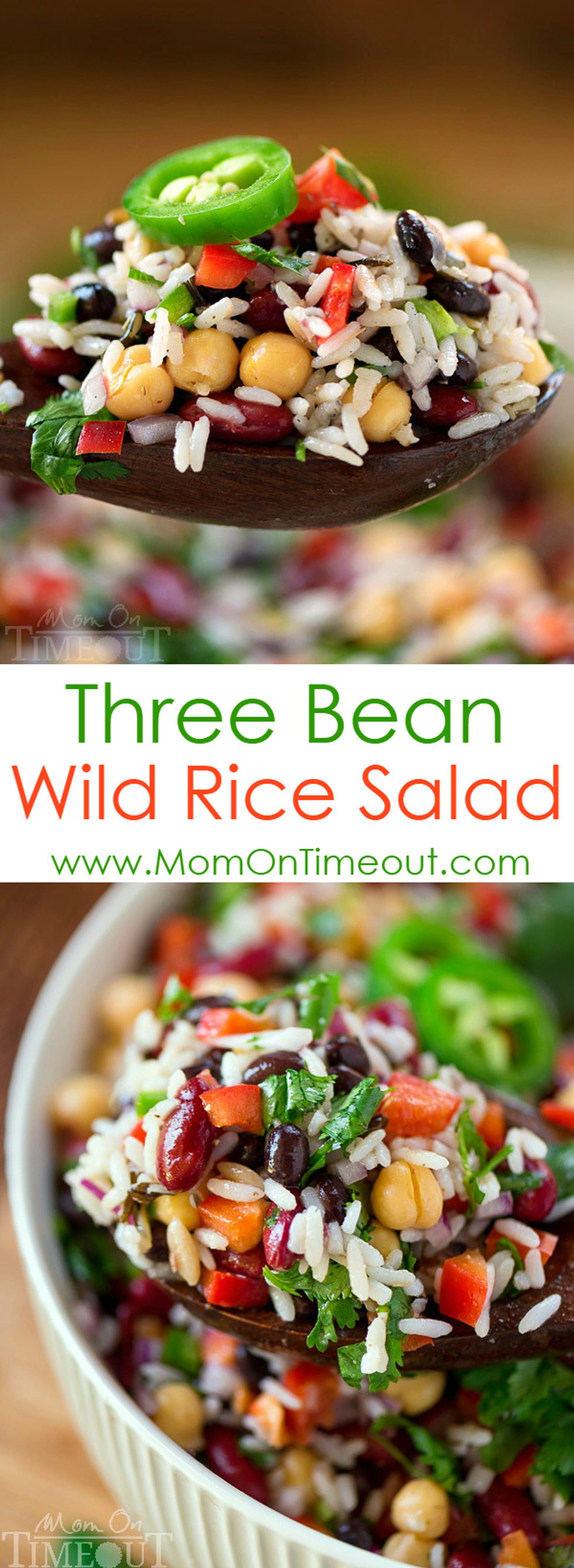 On hot summer nights, turn to this Three Bean Wild Rice Salad for an easy and delicious light dinner that your family will DEVOUR. It also makes the perfect side dish for barbecues, parties, cookouts and more!