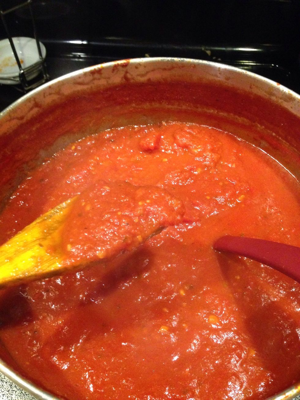 Tomato sauce made with San Marzano tomatoes. This is the type of sauce that makes your salivary glands hurt because the sauce is so flavorful.
