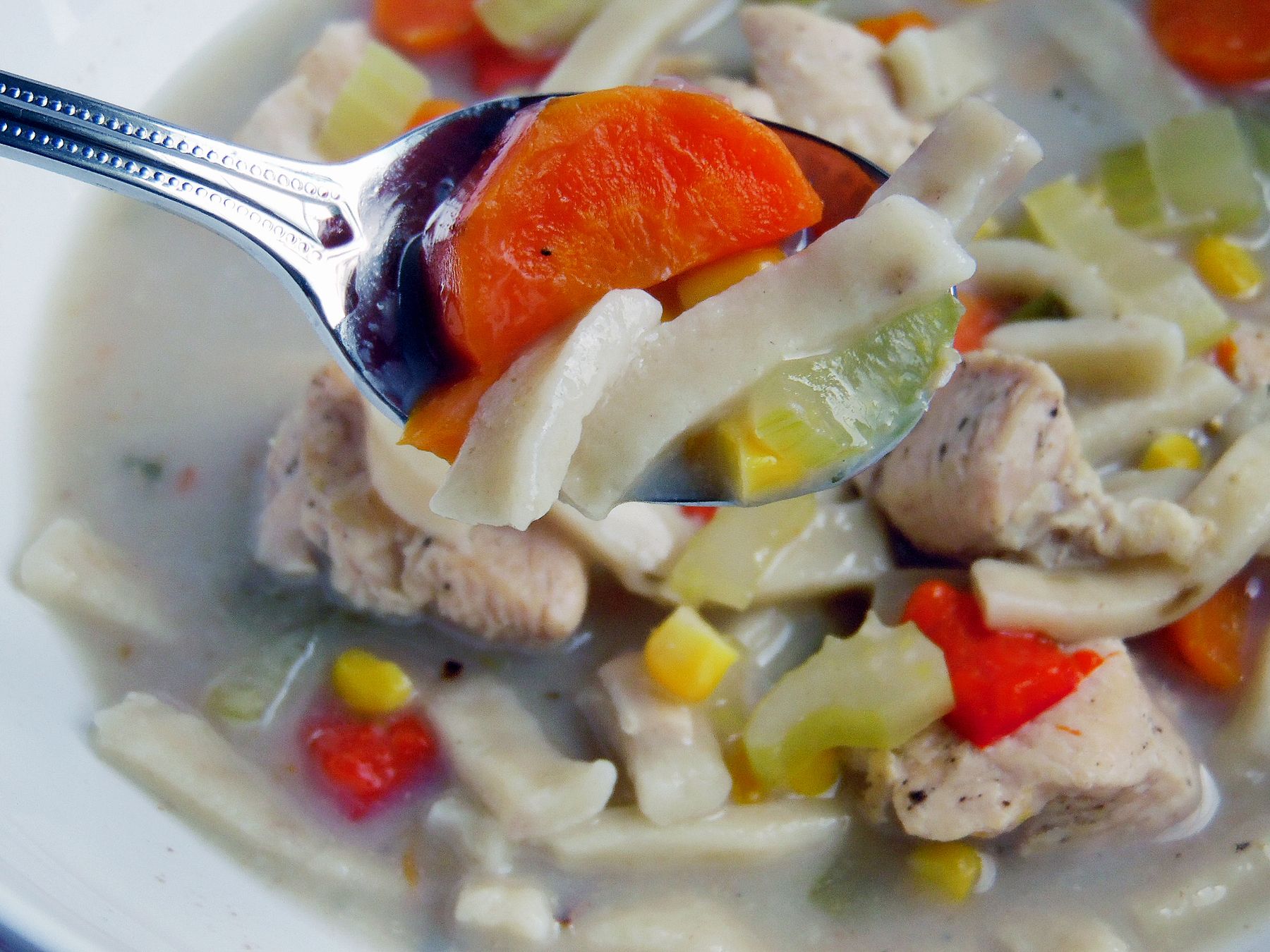a lightly creamy, healthy, chock-full-of-veggies, chicken noodle soup. Best for cold days, sick days, and any days in between!