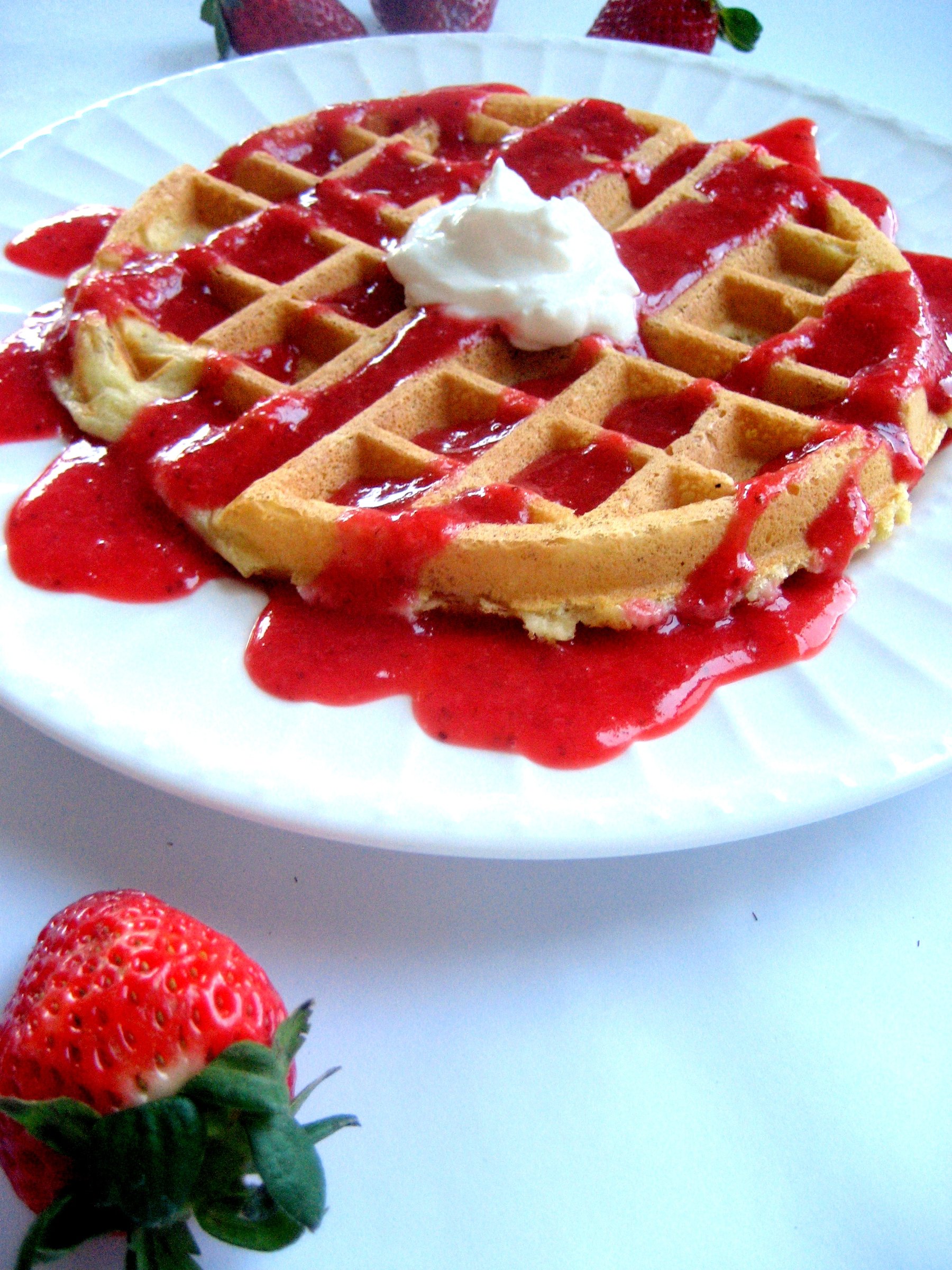 Sweet red strawberry sauce that comes together in minutes and is perfect for drizzling over waffles, pancakes, ice cream, lemonade, or anything else.