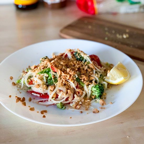 Based on an authentic Pad Thai recipe, this quick & easy vegetarian version is made with broccoli & red bell peppers and no tofu.