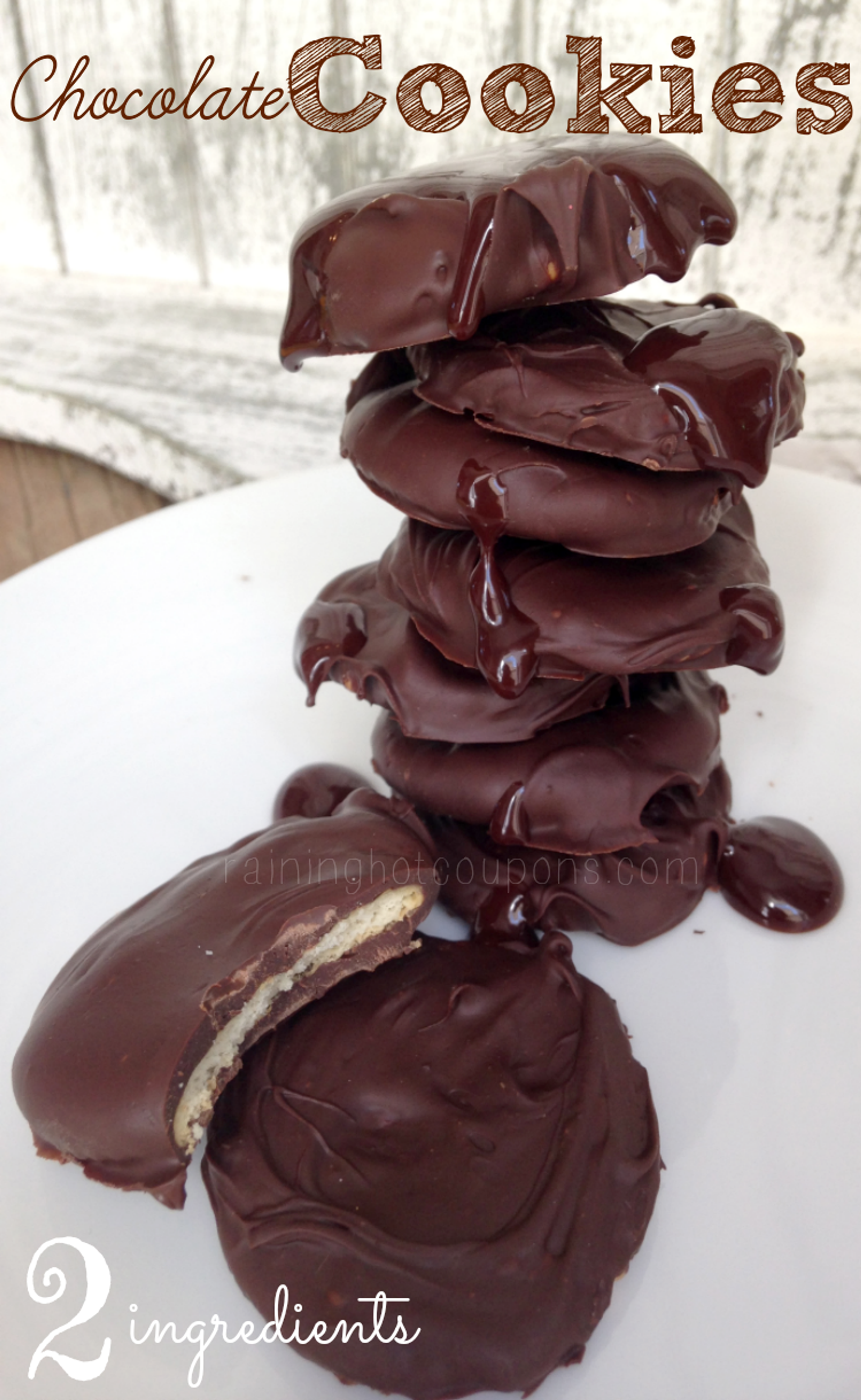 I am so addicted to this next recipe…maybe because they are SO easy to make or because they are SUPER delicious! I also love that you can easily add “mint extract” to these to make a Copycat Girl Scouts Thin Mint cookie! icon wink 2 Ingredient Chocolate Cookies Grab the kids and some chocolate and have fun making these super scrumptious treats! Enjoy..