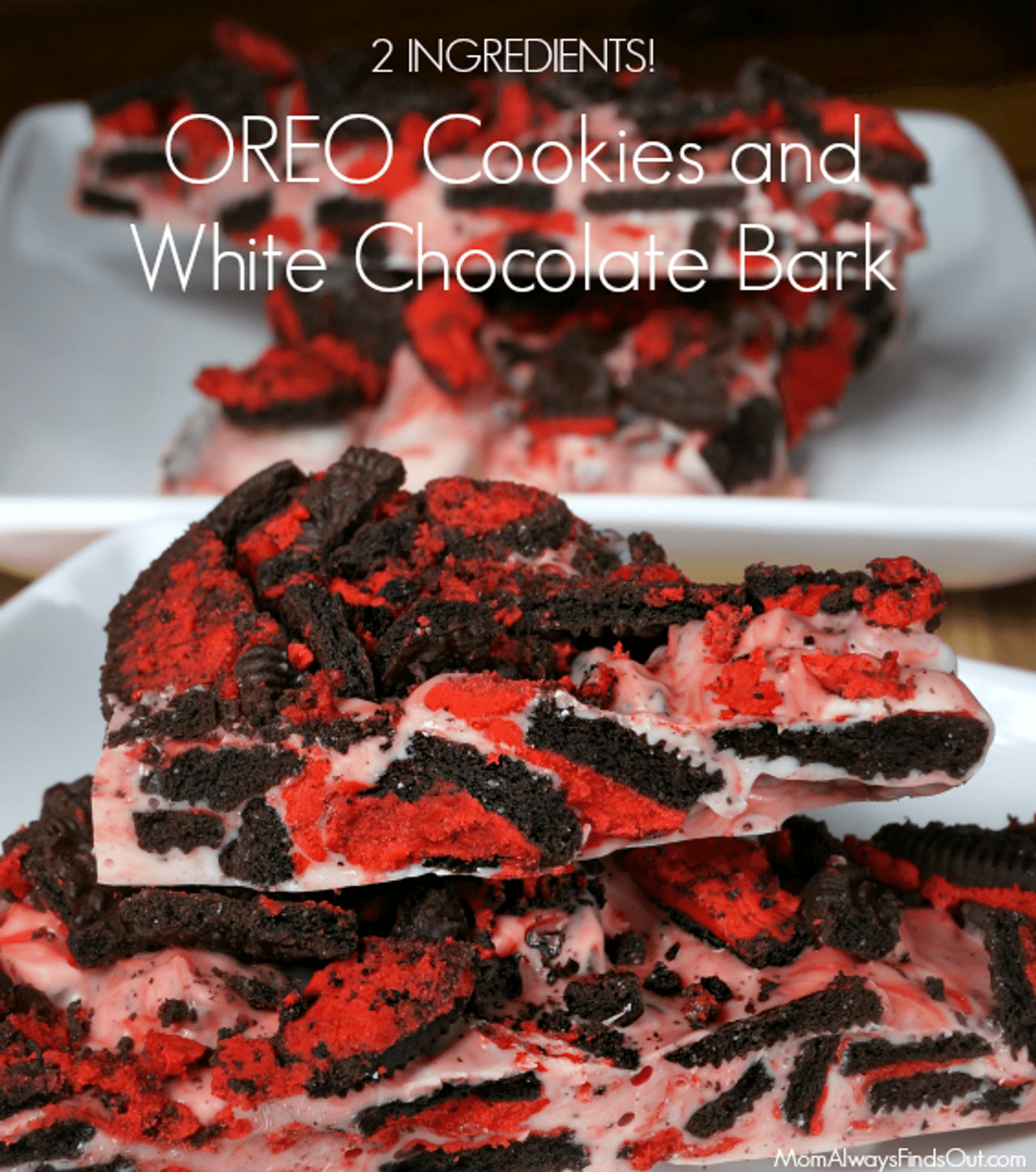 You will love this 2 ingredient white chocolate bark recipe made with OREO cookies. Red cream OREOs are festive for Christmas Bark and Valentine's Day.