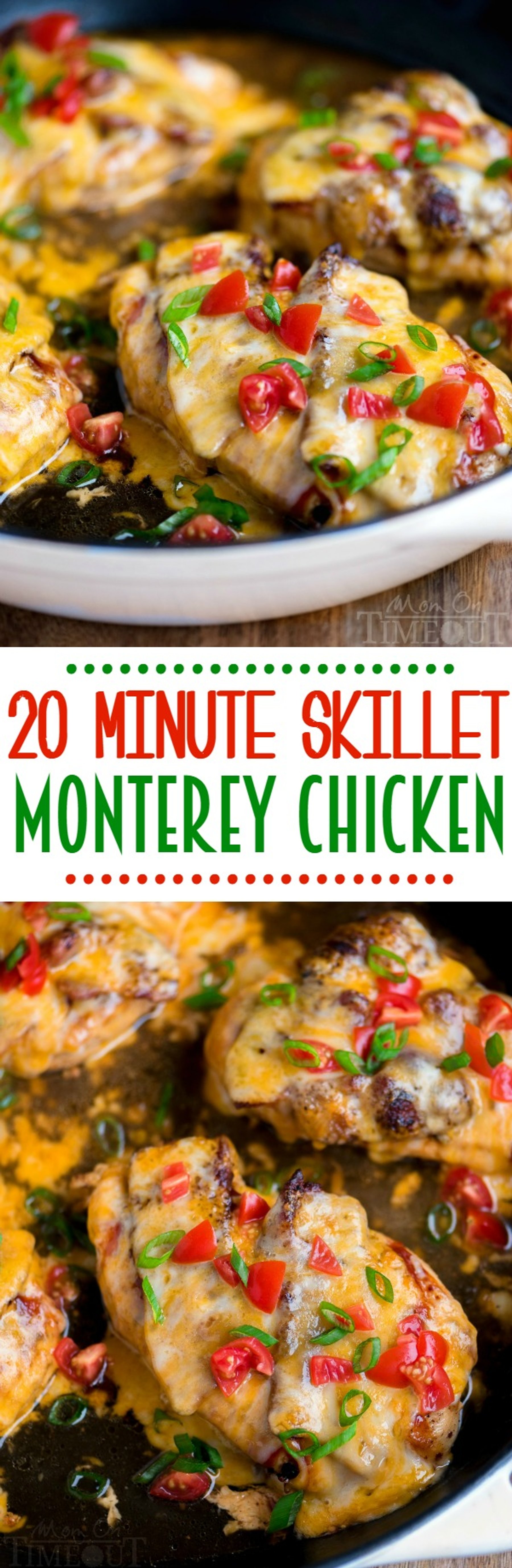 Got 20 minutes? This 20 Minute Skillet Monterey Chicken is just what you want to make for dinner tonight…trust me! Chicken, barbecue sauce, bacon, and glorious cheese come together in this delightful yet simple dish. Sure to become a regular request at your home!