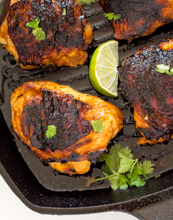 4 chicken thighs, bone in and skin on