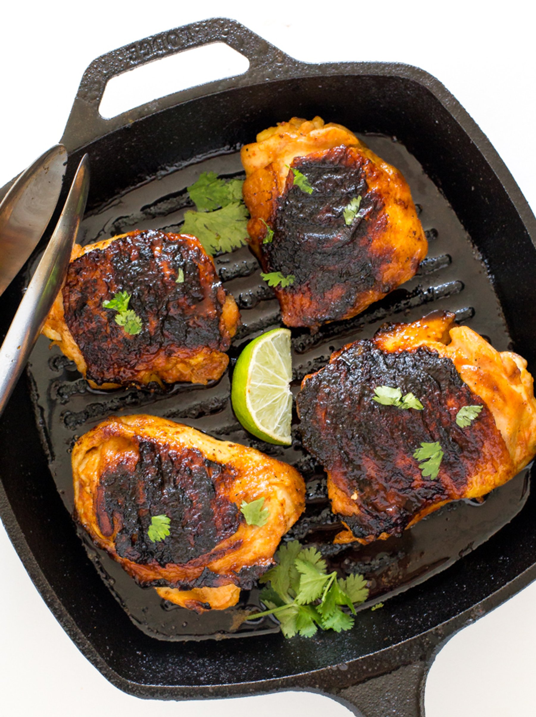 Super Easy 20 Minute Sriracha Chicken. Pan fried chicken thighs marinated in a sweet and spicy sriracha sauce.
