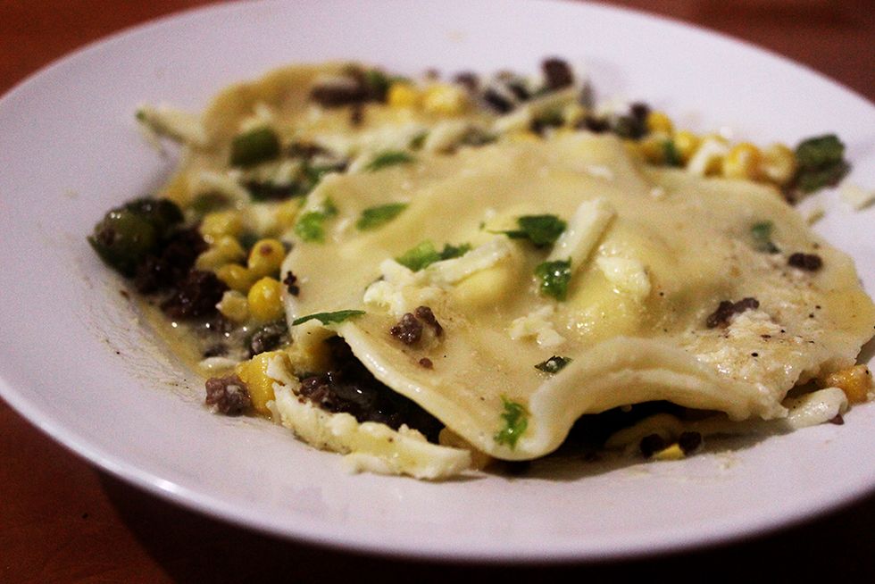 -Place hot ravioli on plate.