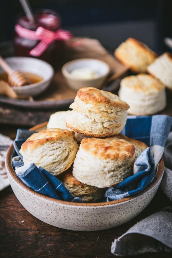 With a few simple tips and tricks, you can make the best Southern buttermilk biscuits from scratch with just 3 ingredients! These fluffy, flaky, buttery treats rise a mile high, creating layers upon layers of old-fashioned goodness. The 3 ingredient biscuit recipe is perfect with country ham, sausage gravy, or jam for breakfast, or delicious alongside soup, chili, pot roast, or pulled pork for dinner.