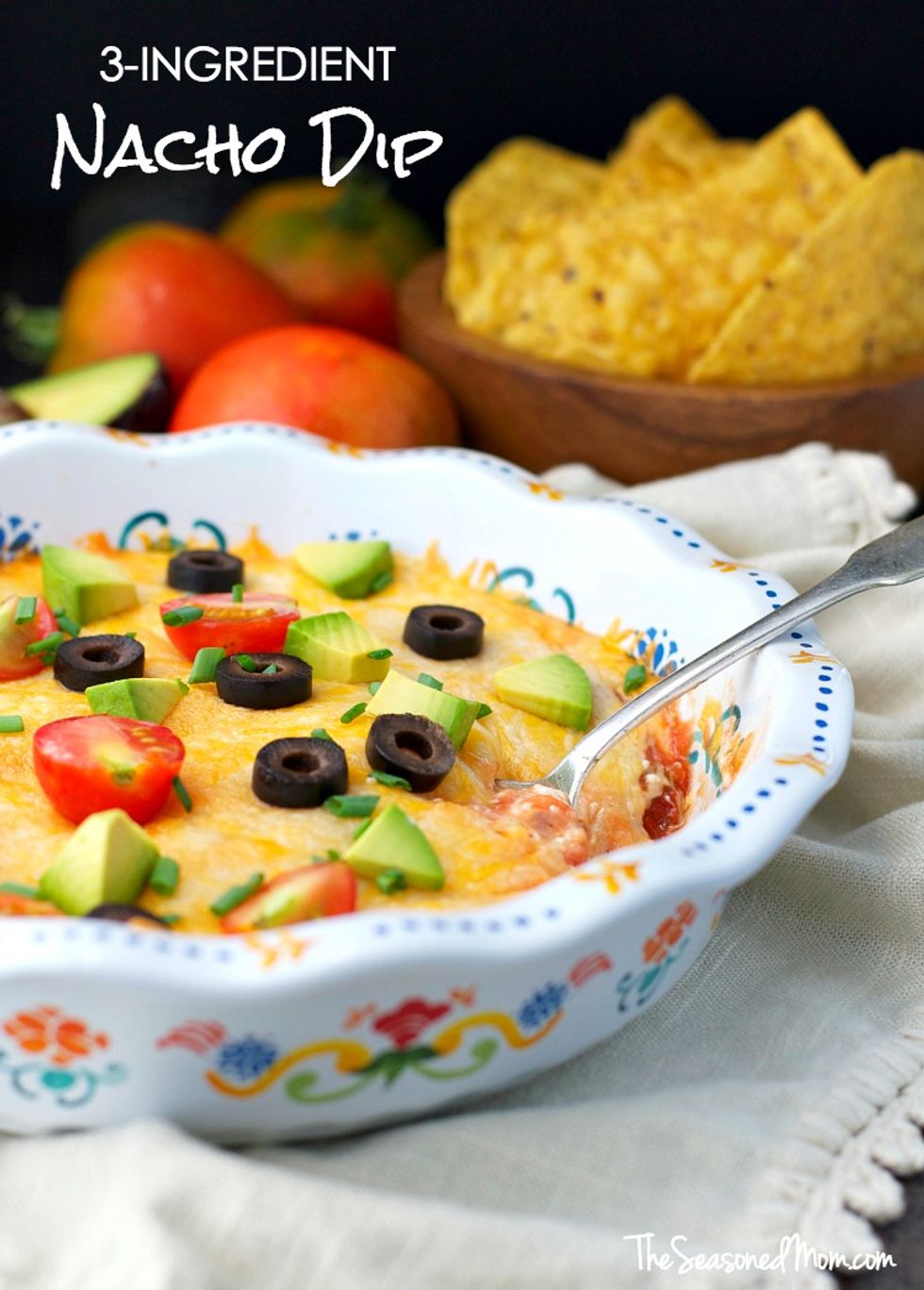 This 3-Ingredient Nacho Dip is a quick and easy appetizer for all of your celebratory occasions! Whether you’re hosting a football tailgate, a family birthday, or just a night in with friends…spend less time in the kitchen with this simple cheesy party snack!