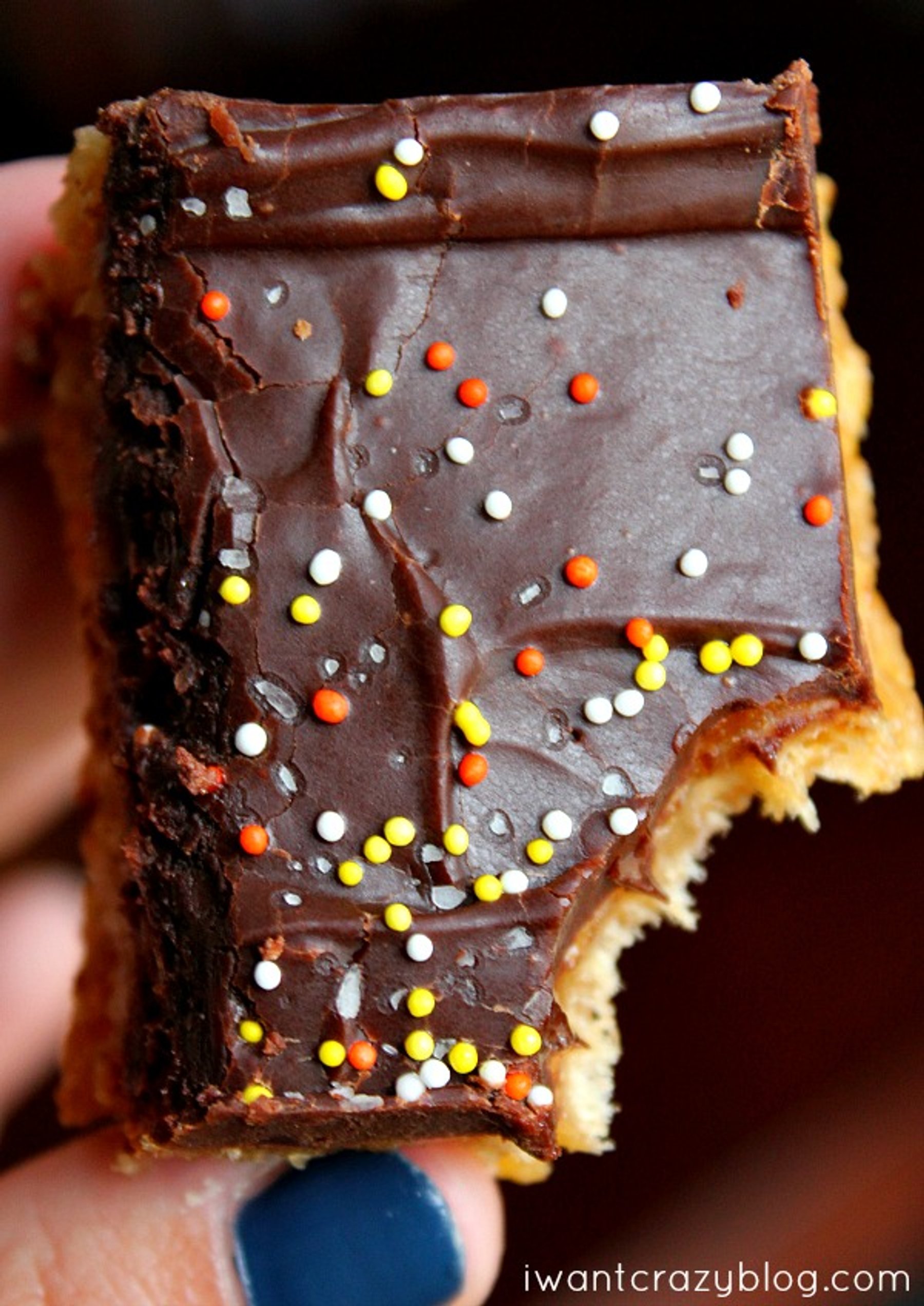 delicious crispy treats packed with pumpkin butter topped with gooey homemade caramel and then finished with a chocolaty ganache topping