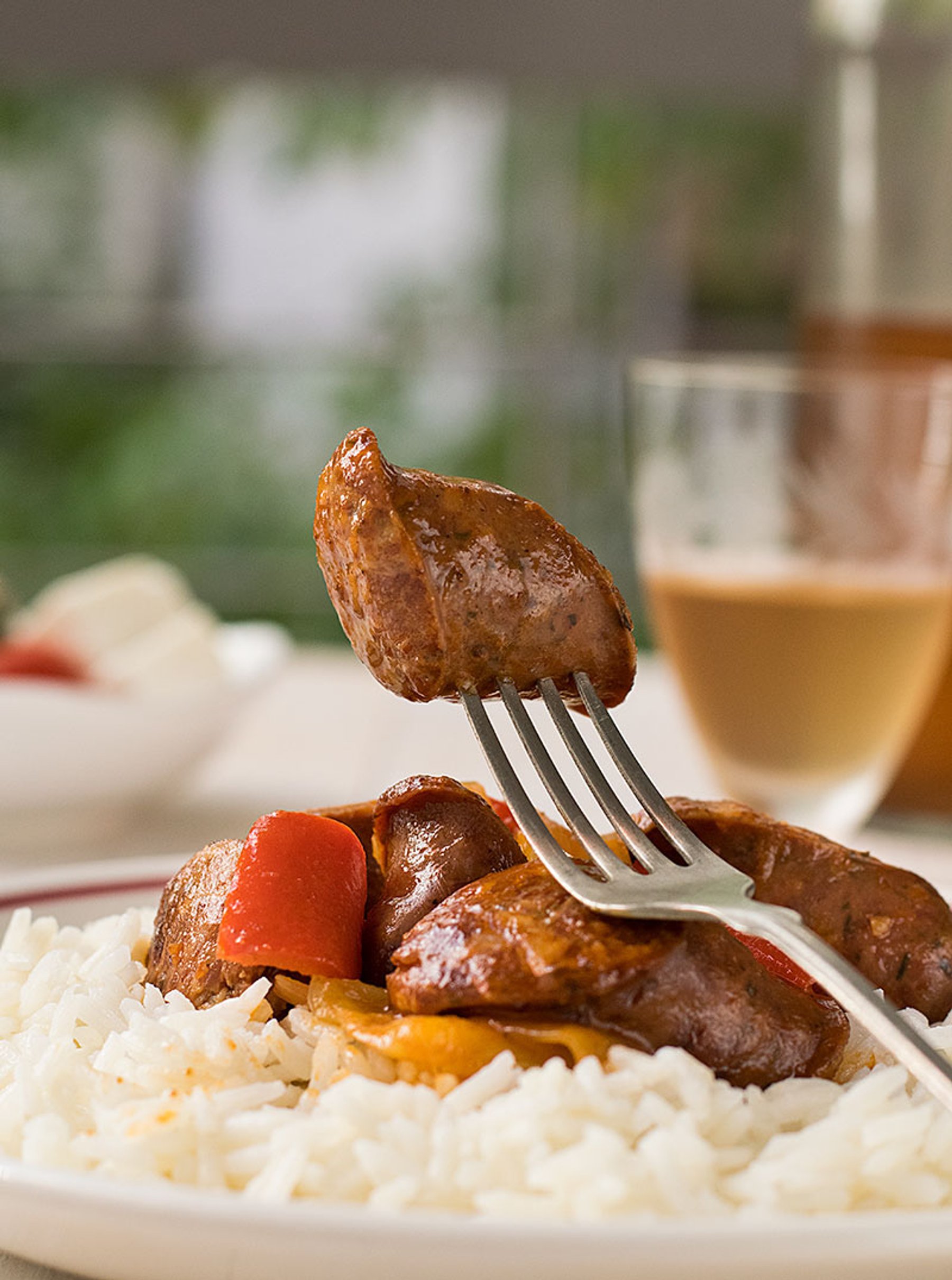 1½ pounds (rustic) pork sausages, cut in 2-inch pieces.