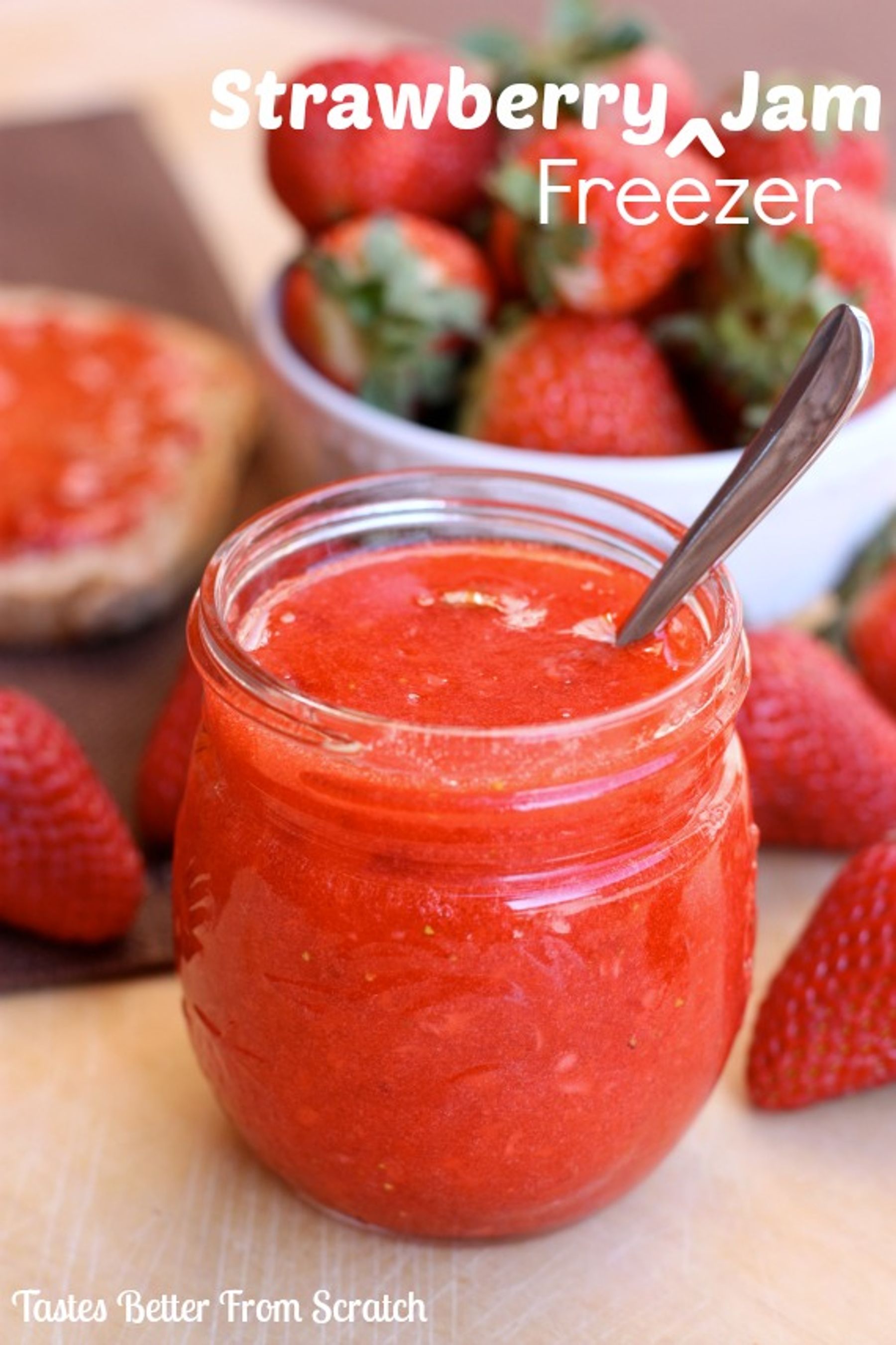 Perfectly sweet homemade strawberry jam, made in less than 30-minutes, that you can freeze and enjoy for up to 1 year!