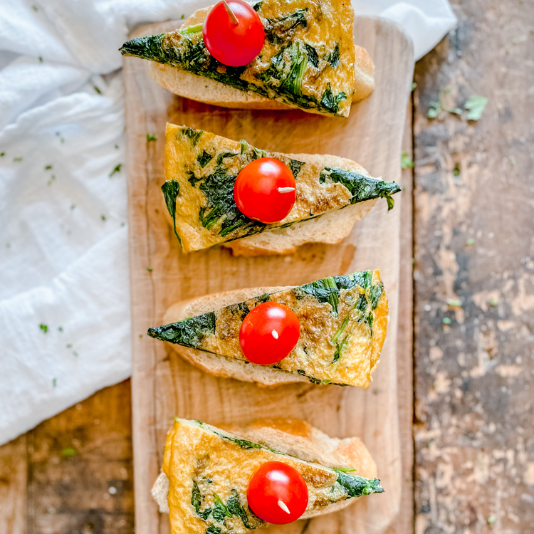 - To make the Spanish spinach omelette on baguette, crack 6 eggs into a large bowl, season with sea salt & black pepper and whisk together, reserve 10 oz fresh bagged spinach, cut 1 baguette into...