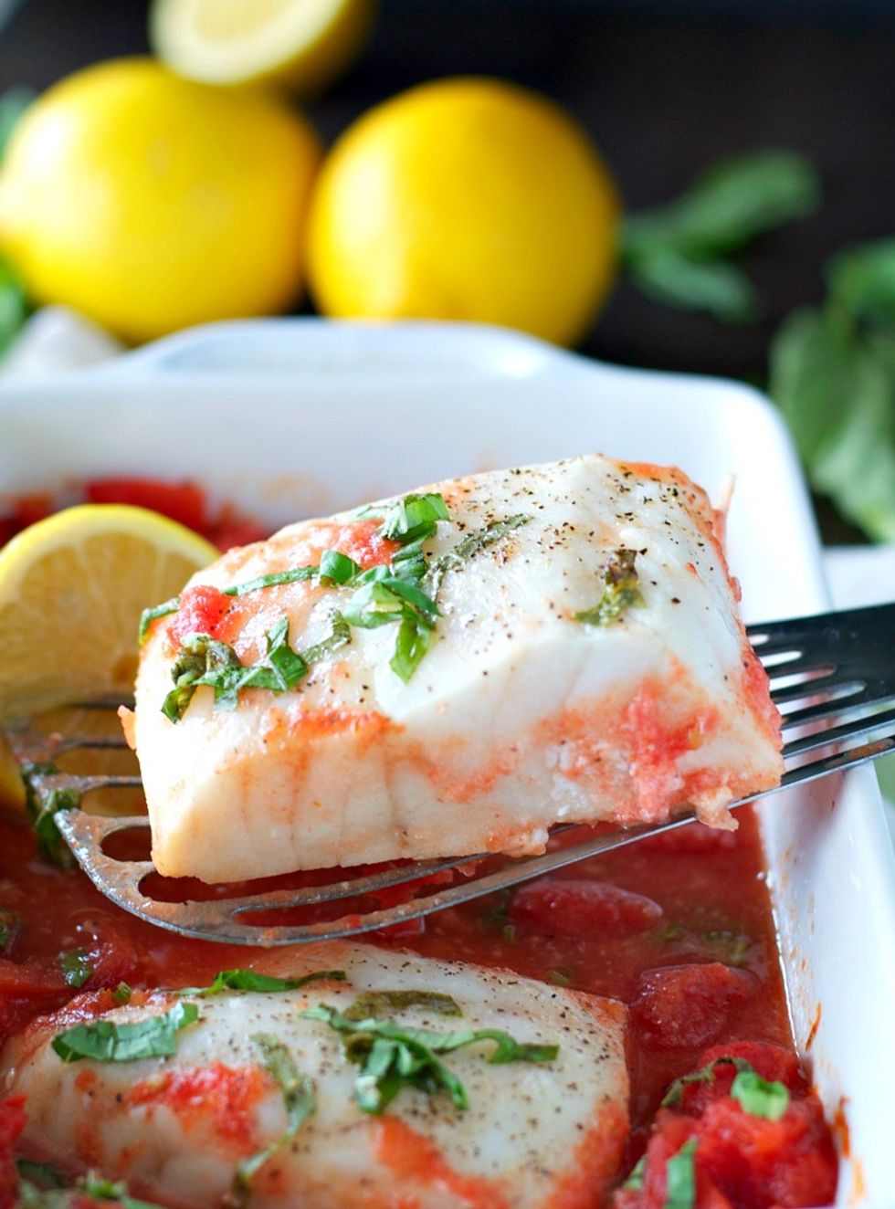 4-Ingredient Baked Fish with Tomato and Basil Sauce