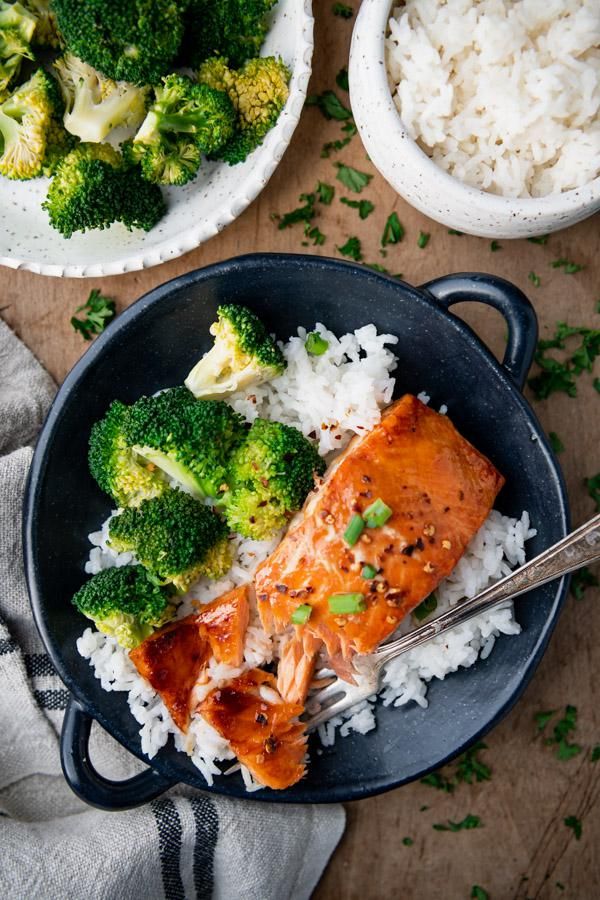 Crisp on the outside and tender and buttery on the inside, this 4-ingredient baked salmon recipe is the easiest and most delicious way to prepare fish at home! With just a few pantry staples like soy sauce, maple syrup, and honey, you can create a healthy and family-friendly dinner in just 30 minutes. Serve the sweet and savory fish with a side of roasted broccoli, fluffy white rice, or a Ramen noodle salad.