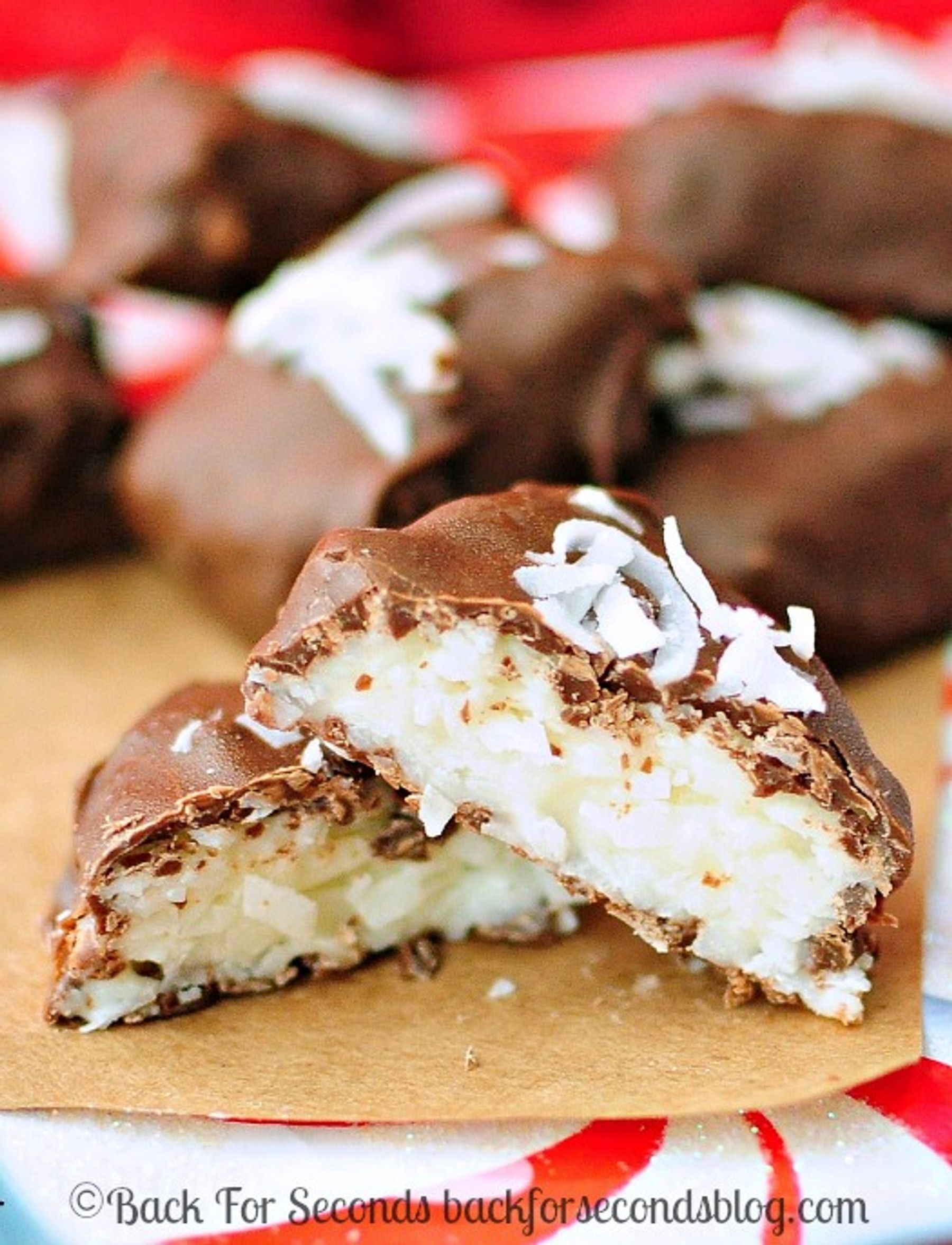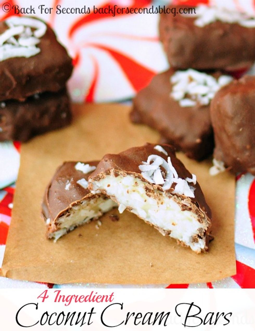 These 4 Ingredient Coconut Cream Bars are an easy, no bake candy that tastes like a mounds bar! They’re even gluten free!!