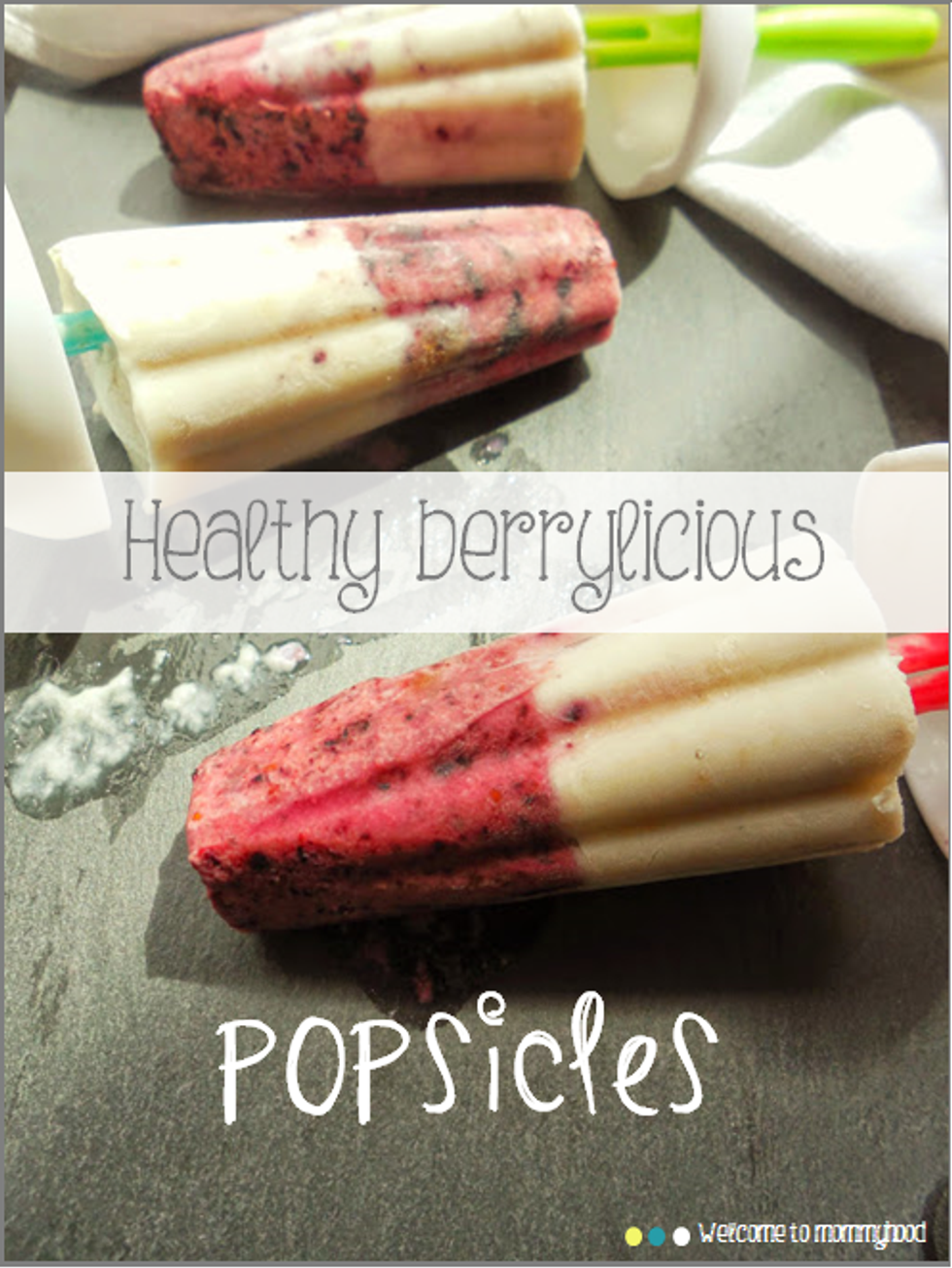 Blend blueberries, honey and 4 tablespoons coconut milk Pour into popsicle molds Put into freezer for half an hour Blend 1/4 cup coconut milk and 1 banana Pour over the blueberry mixture, add sticks Freeze for three to four hours
