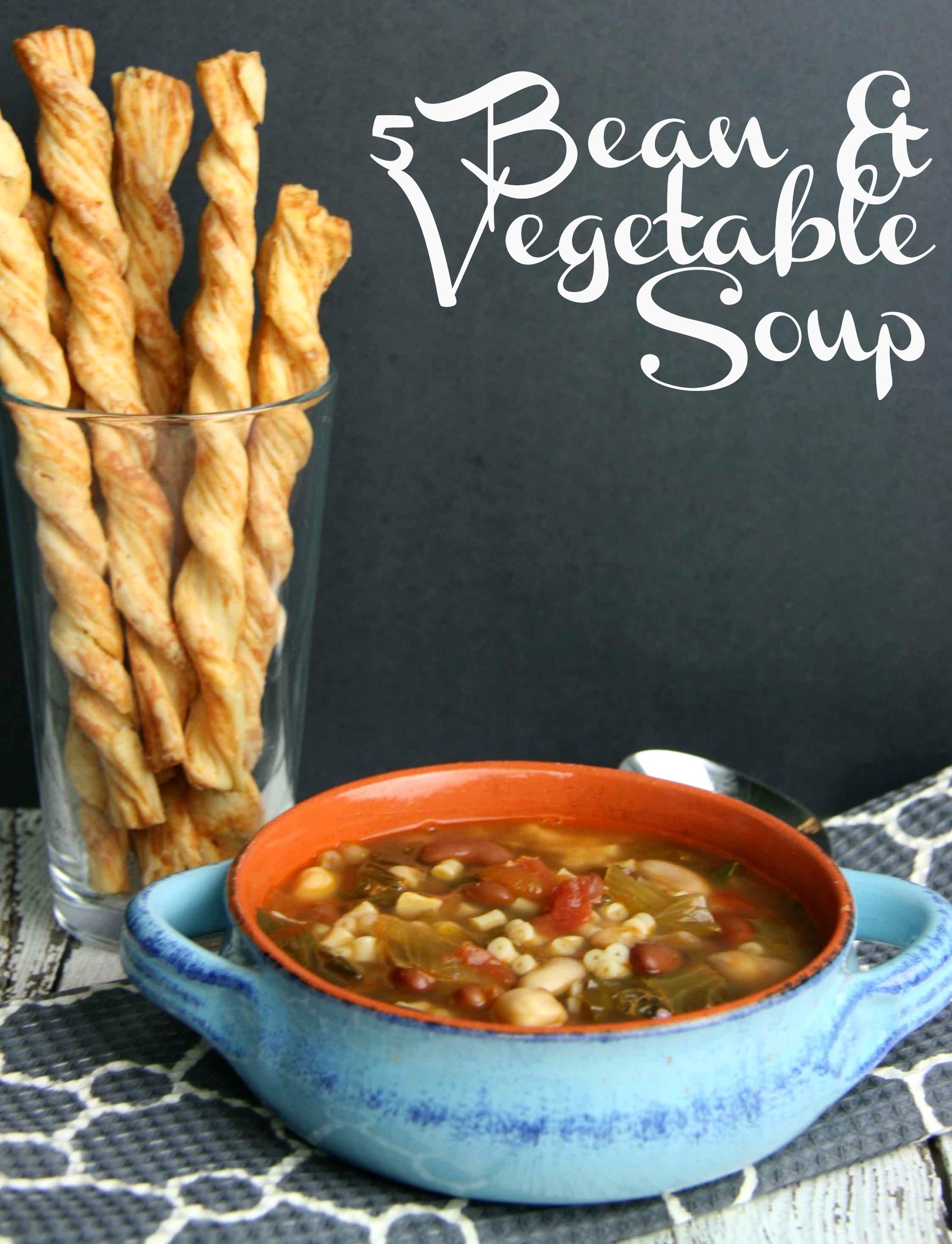 This soup is hearty and oh so healthy! A mix of 5 beans, tomato, escarole and spinach; it works! The base starts with olive oil, onion, garlic, tomato paste and a bay leaf. Then a whole lot of water along with a can of diced tomatoes, the escarole and a great variety of beans are added and simmered away to allow the flavors to blend. At the very end some baby spinach is added just to wilt and I did go ahead and serve it with itty bitty tubetti pasta.