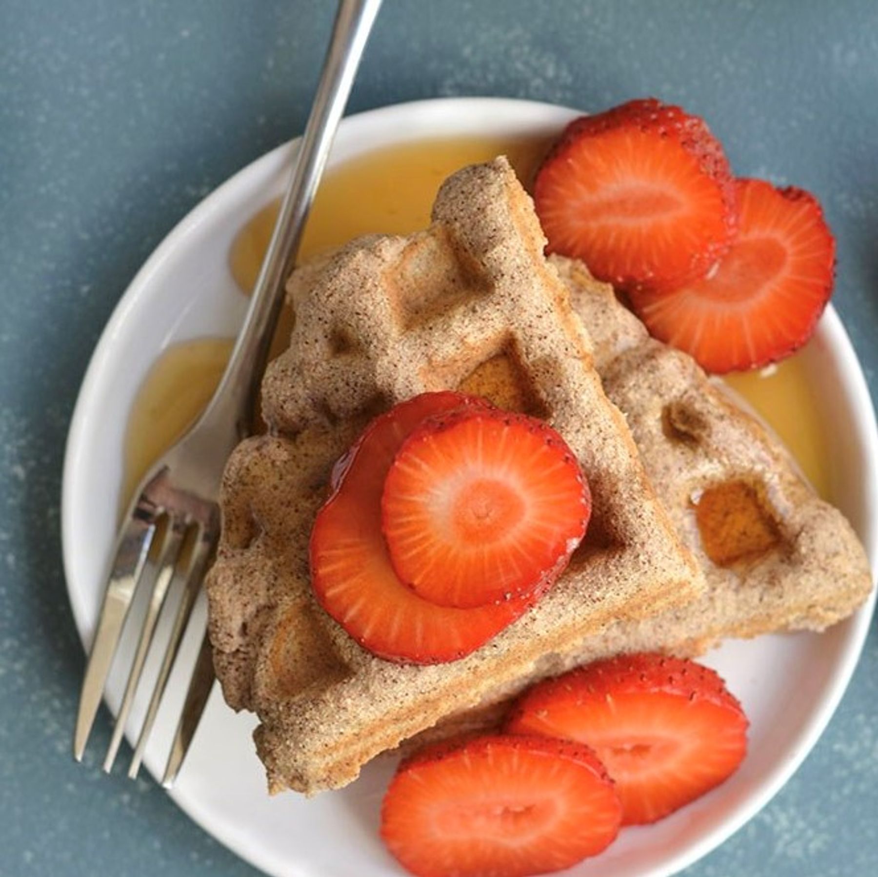 Super Easy 5 Ingredient Coconut Flour Waffles! Made with real food ingredients, these low carb waffles are the perfect fuel for a busy morning or weekend breakfast. Freezer friendly for meal prep too! Paleo + Low Calorie + Gluten Free