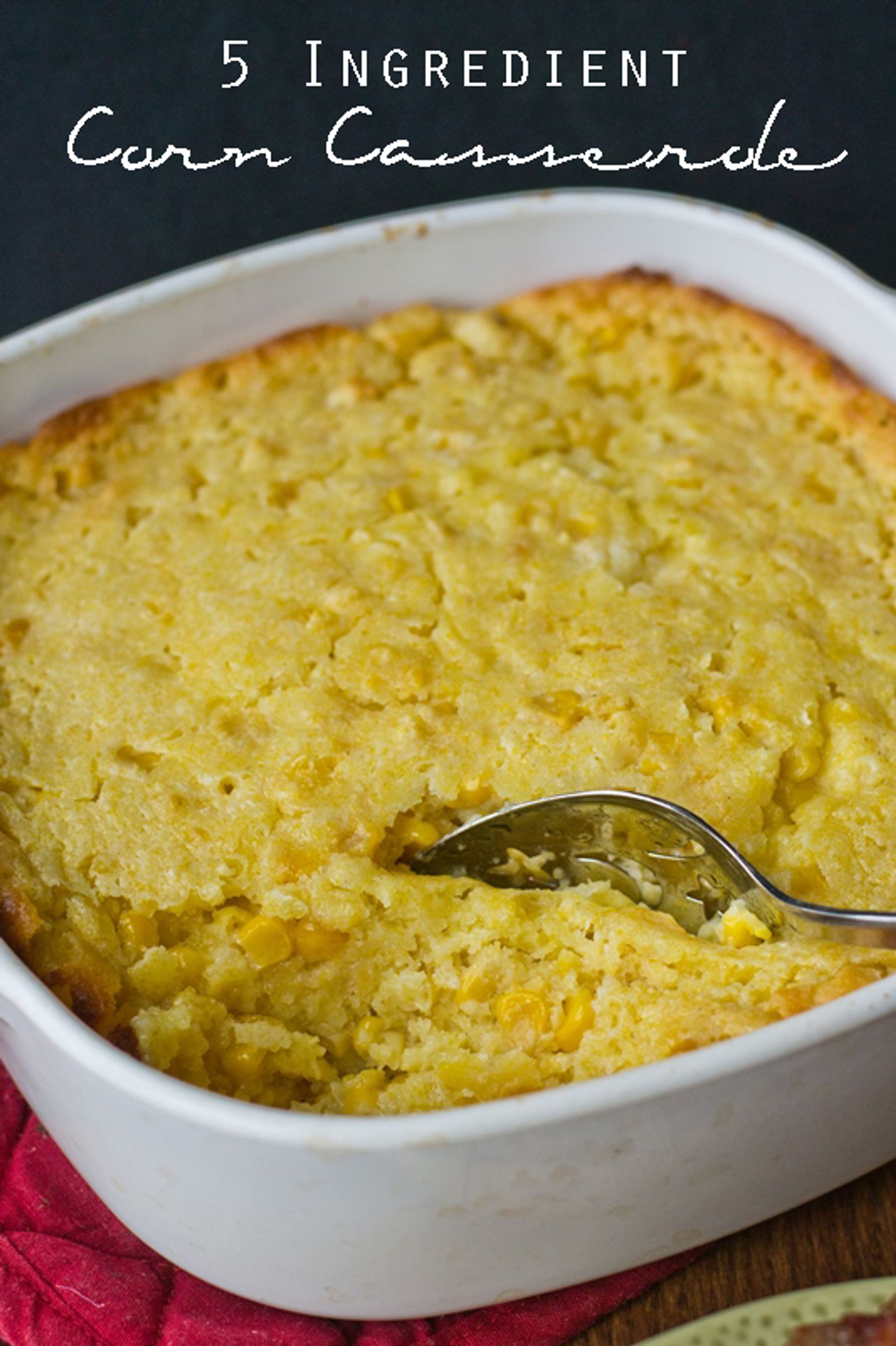 This no-fail corn casserole recipe uses only 5 simple ingredients, but bakes up into a savory side dish that will complement any meal.