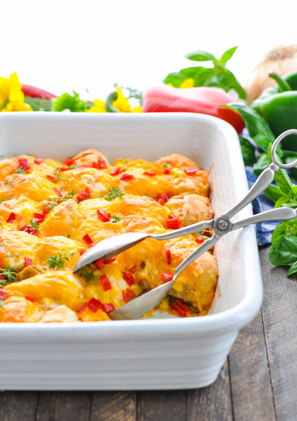 With just five simple ingredients, this Dump-and-Bake Philly Cheesesteak is a quick and easy dinner recipe that only requires about 10 minutes of prep! Loaded with bell peppers, onion, beef, and cheese, this one dish meal has all of the flavors of your favorite sandwich — and they’re baked right into the casserole!