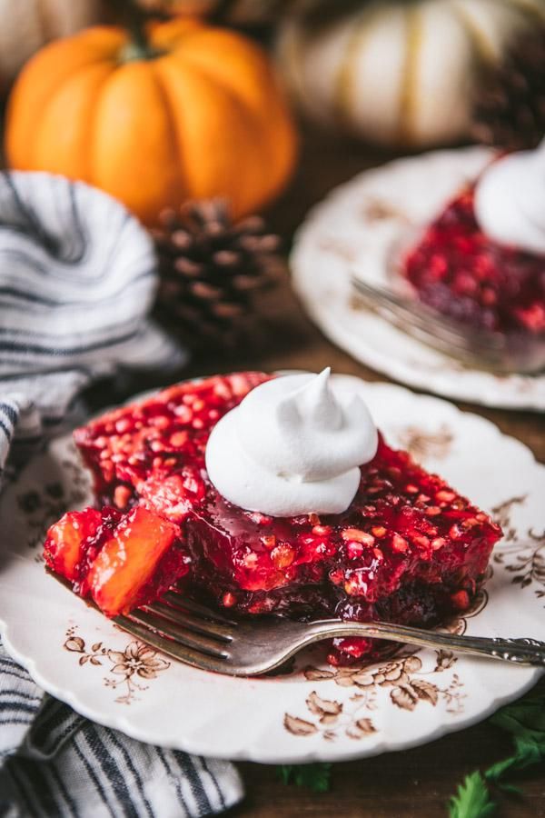 You only need 5 ingredients to prepare this sweet and easy old-fashioned Cranberry Jello Salad! The flavorful combination of raspberry or cherry Jell-O, cranberries, pineapple, oranges, and pecans, is the perfect make ahead side dish or dessert for the holiday season. Serve the cranberry salad alongside a Thanksgiving turkey, Christmas ham, or beef tenderloin, or top it with a dollop of whipped cream.