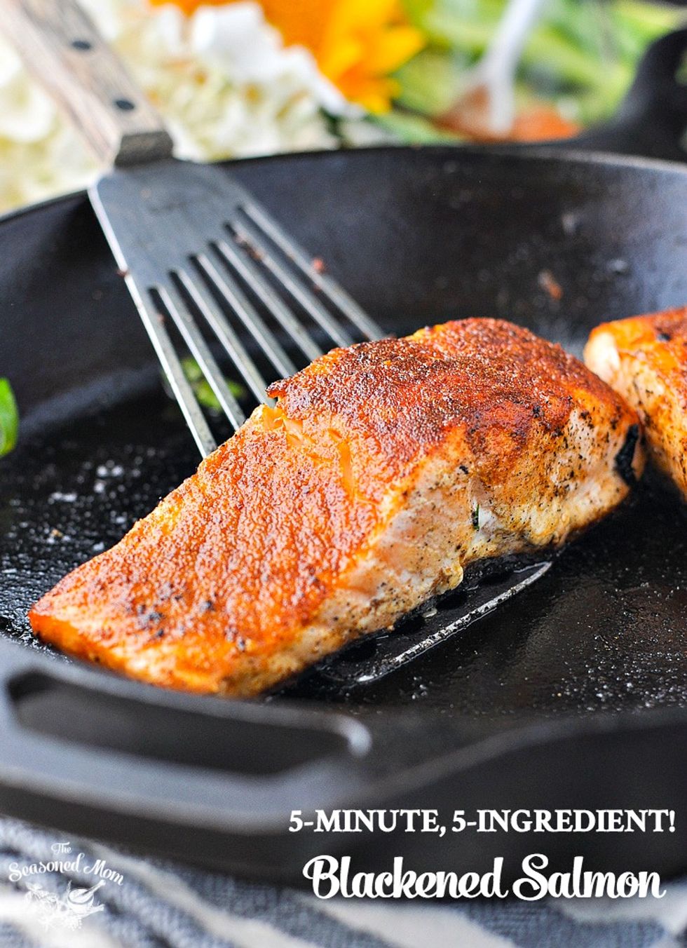 Spice up your next healthy seafood dinner with this easy 5-Minute, 5-Ingredient Blackened Salmon! It’s a classic Southern favorite that’s crispy on the outside, moist and buttery on the inside, and loaded with zesty Cajun flavor!
