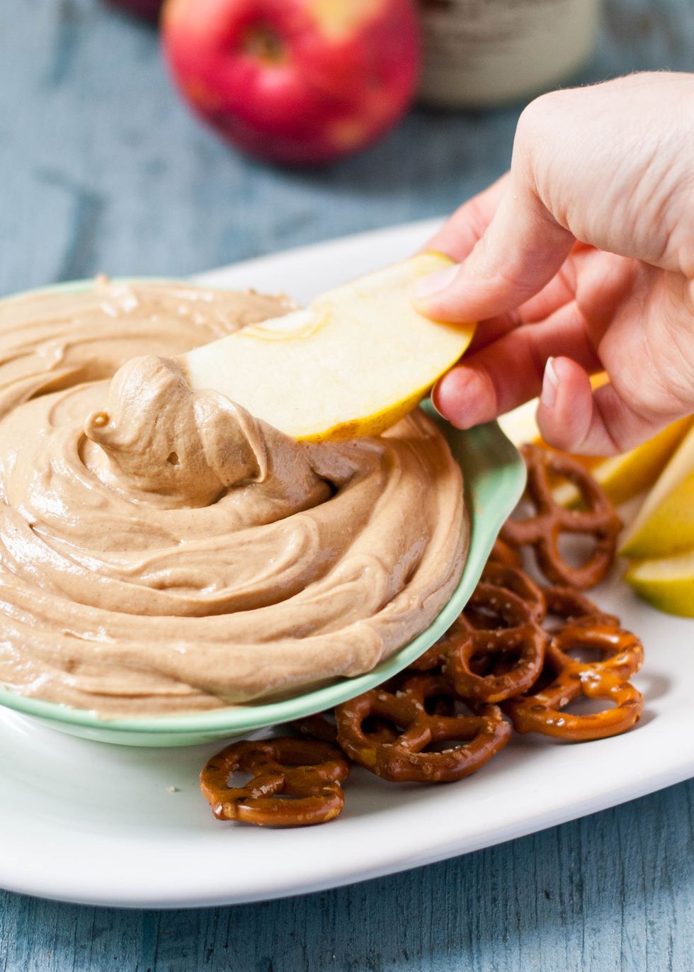 Peanut butter and marshmallow cream form the base of this incredible dip you can throw together in under 5 minutes!