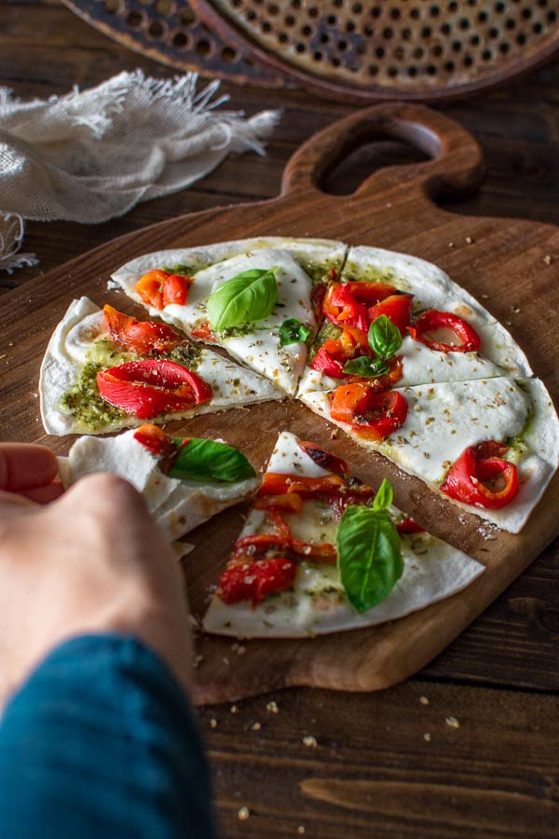 5-MINUTE TORTILLA PIZZA WITH ROASTED PEPPERS