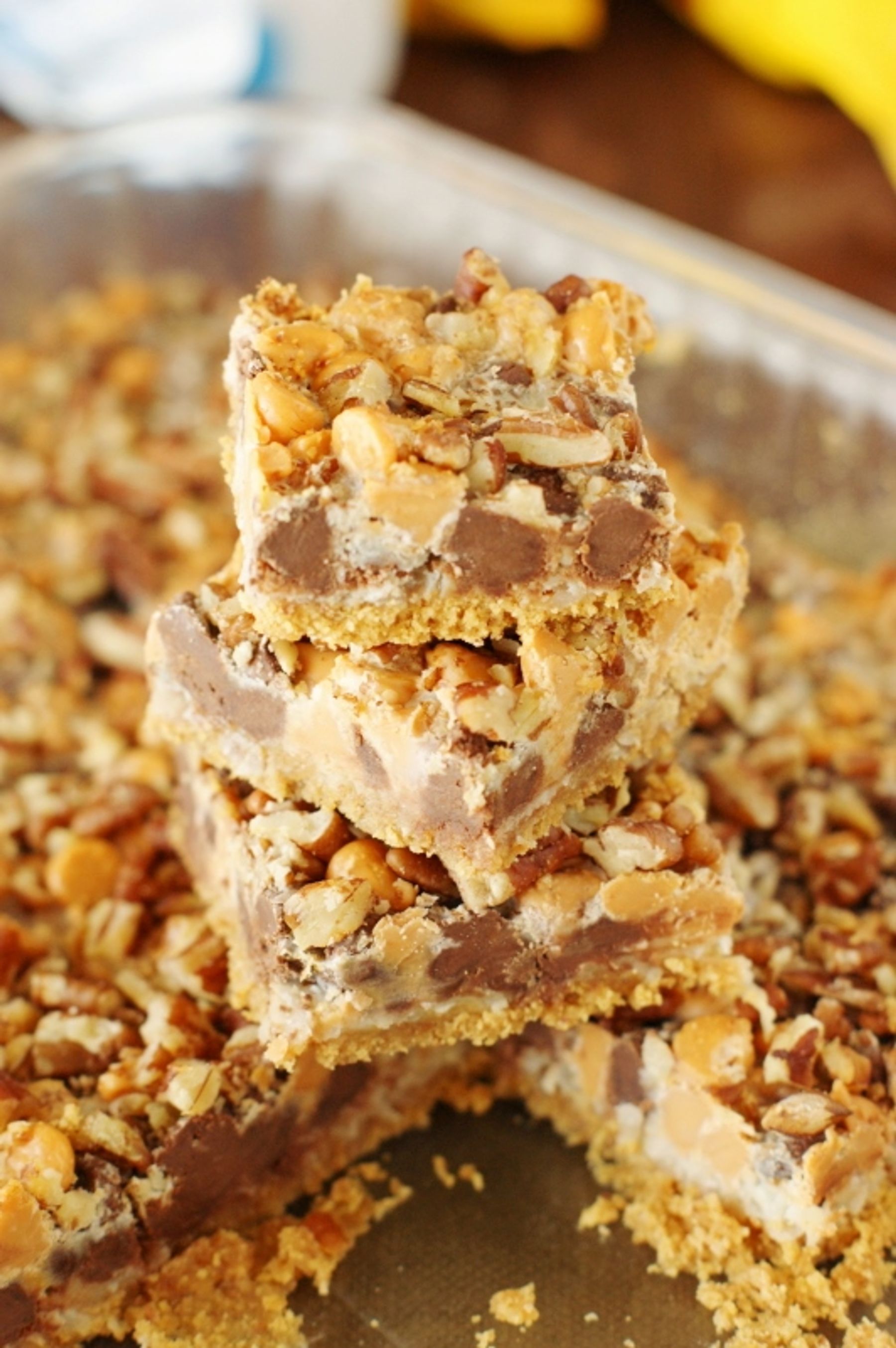 Seven ingredients layered together make amazingly delicious 7 Layer Cookies. How can you go wrong with chocolate chips, butterscotch chips, coconut, and pecans?
