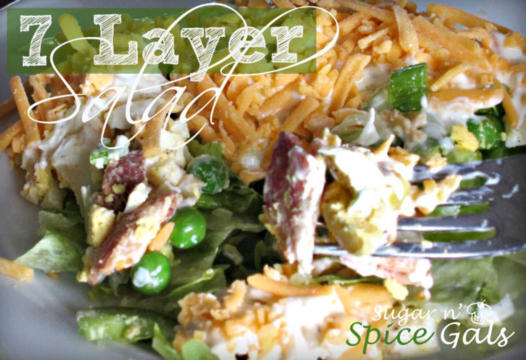 My family loves this salad! I have made this one for years and I often get asked to bring this to family gatherings. The great thing about it is that I can make it the night before and it will be perfect for the next day. This salad is 7 layers of yumminess!