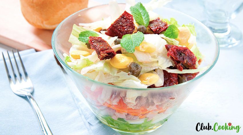 - Step 1. In a glass bowl create a bed of chopped iceberg lettuce as a 1 layer