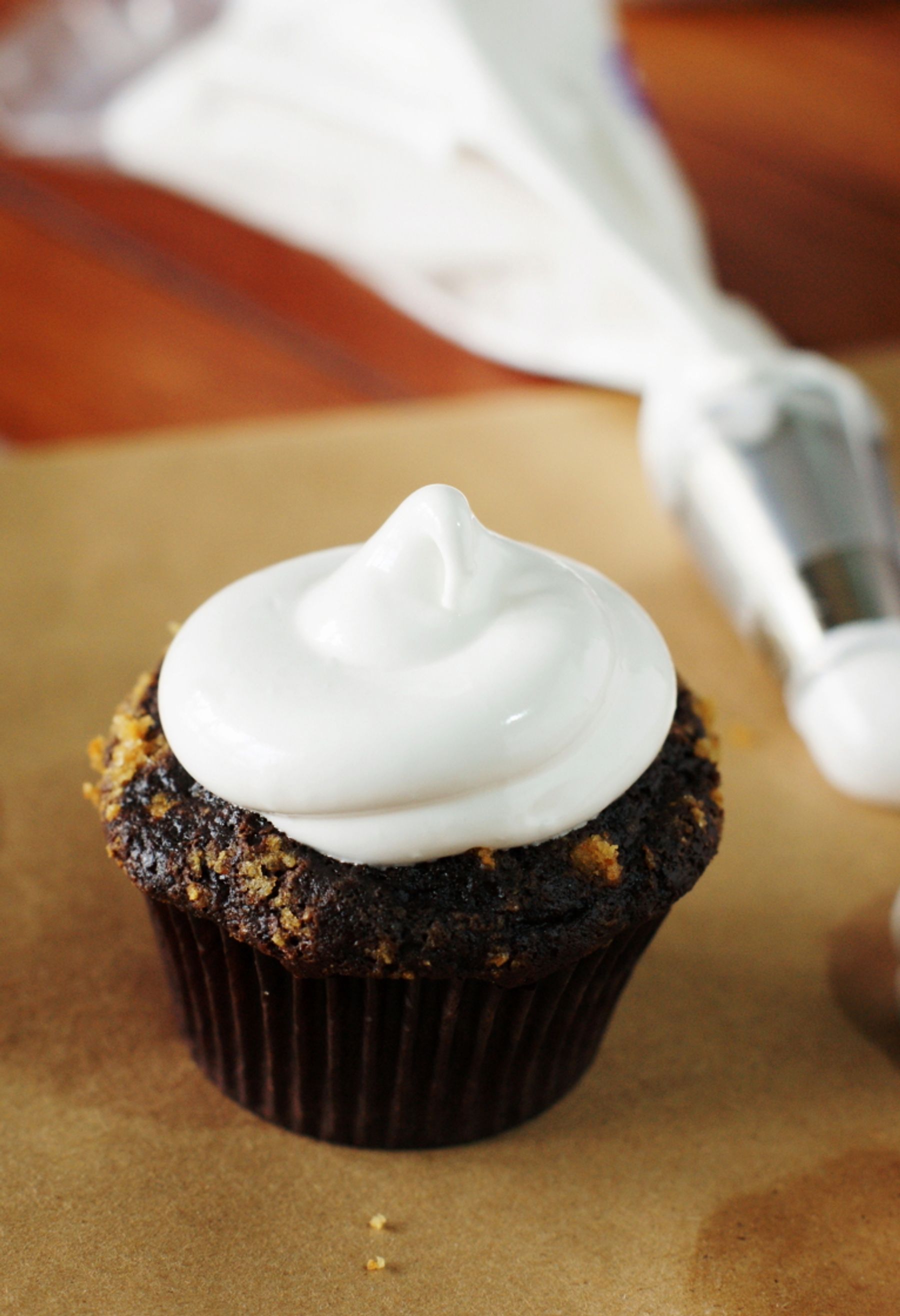 Perfectly light and fluffy for frosting a rich chocolate cake, deliciously-fun S\\\'mores cupcake or fudgy S\\\'mores pie, see how to make 7-Minute Marshmallow Frosting, step-by-step.