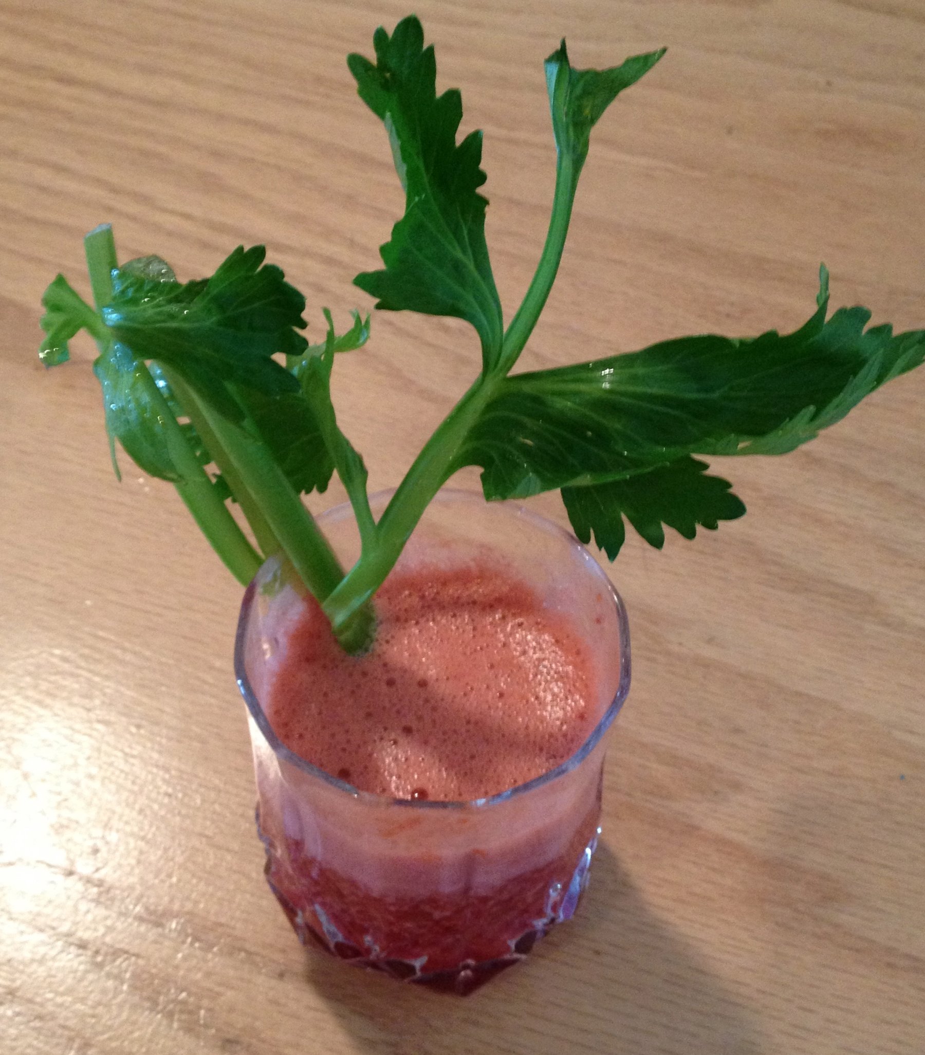 Juice the tomatoes and then put all of the tomato pulp and 1 cup of juice in your blender and blend it up well. Put it in a pitcher. Juice the rest of the veggies. I cut the beet, carrots and celery into...