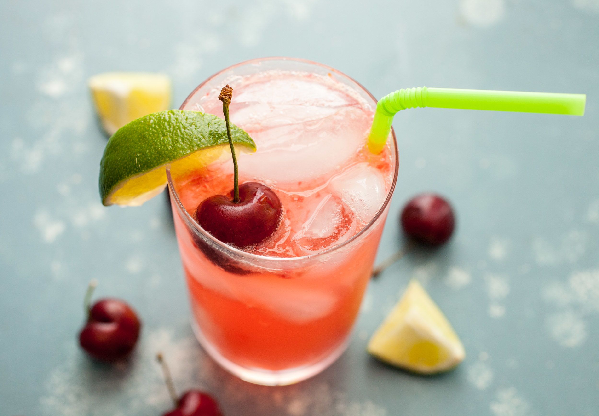 - Pit three fresh cherries and add them to a shaker glass with lime juice and cherry liquor. Muddle well. Add ice and gin.
