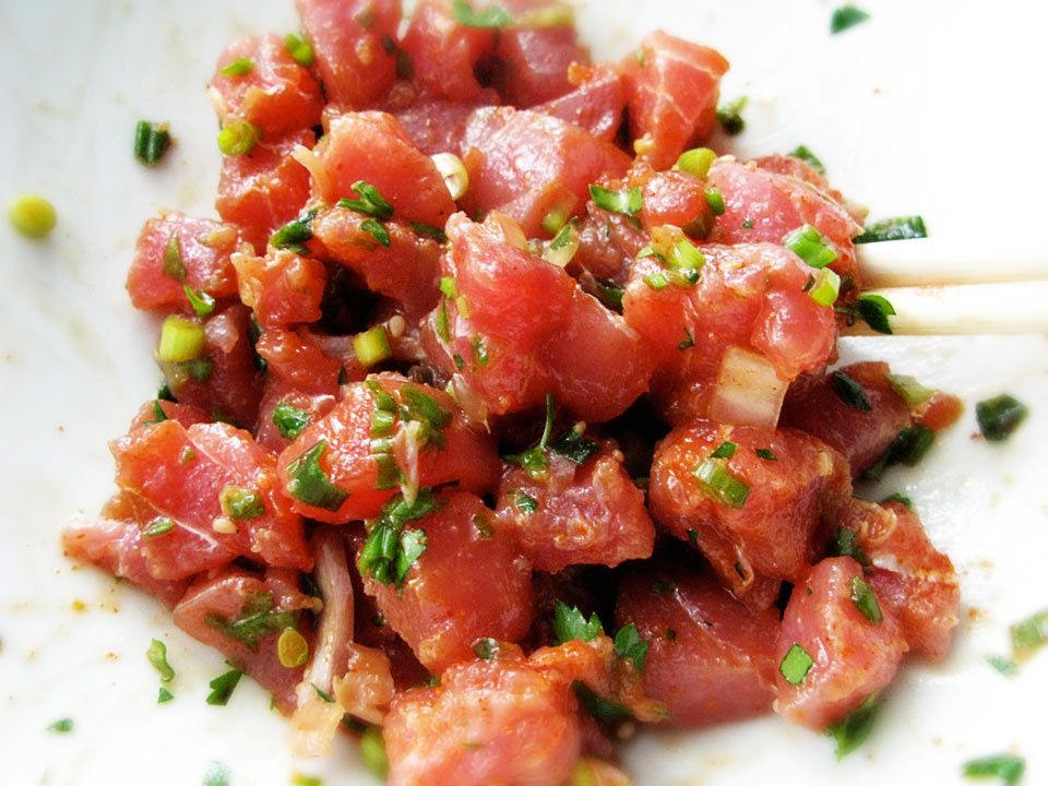 1 pound 1 pound sashimi-grade ahi tuna ( cut into 1/2 inch cubes )