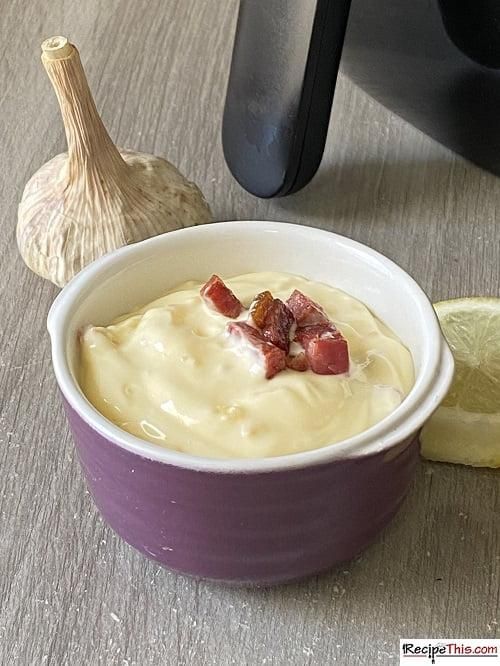 Air Fryer Bacon Aioli Samantha MilnerJune 23, 2021 54 Bacon Aioli. This is an easy method for making your own homemade bacon aioli using the air fryer. Loaded with air fryer bacon, fresh garlic, and mayonnaise, this is the best air fryer dip you will ever make.try itSee the full directions on my site