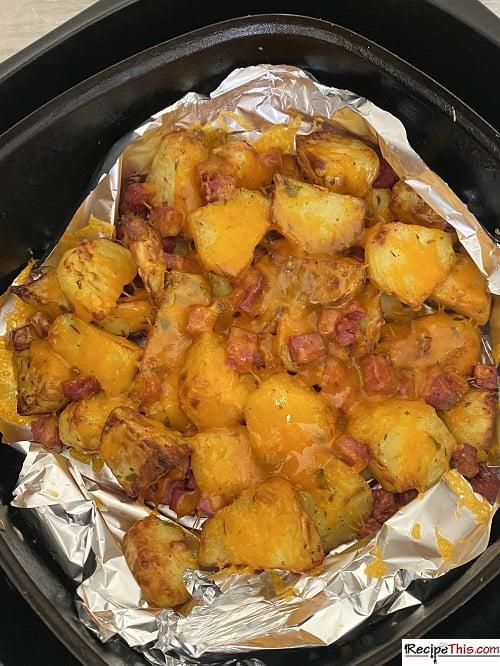 Air Fryer Cheesy Bacon Potatoes Samantha MilnerJune 30, 2021 35 Cheesy Bacon Potatoes. Let me show you how easy it is to cook air fryer cheesy bacon potatoes. Loaded with crispy potatoes, crispy bacon, cheddar cheese and onion.Try itSee the full directions on my site