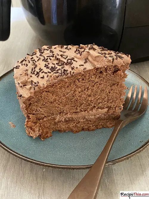 | Air Fryer Chocolate Cake. How to make cake in air fryer with my simple air fryer cake recipe. Easy to follow along at home, incredibly moist and perfect for mix and matching with your favourite cake flavours or add ins. Also includes a yummy chocolate buttercream filling. |