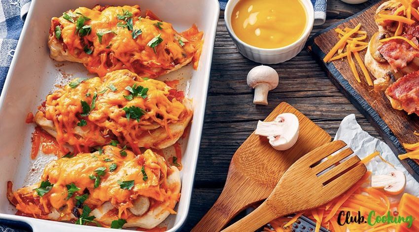 This delicious recipe might be even better than the restaurant version. And so easy to make. Chicken sits on top of sliced mushrooms, drizzled with homemade honey mustard sauce, sprinkled with bacon bits under a blanket of monetary jack melted cheese.