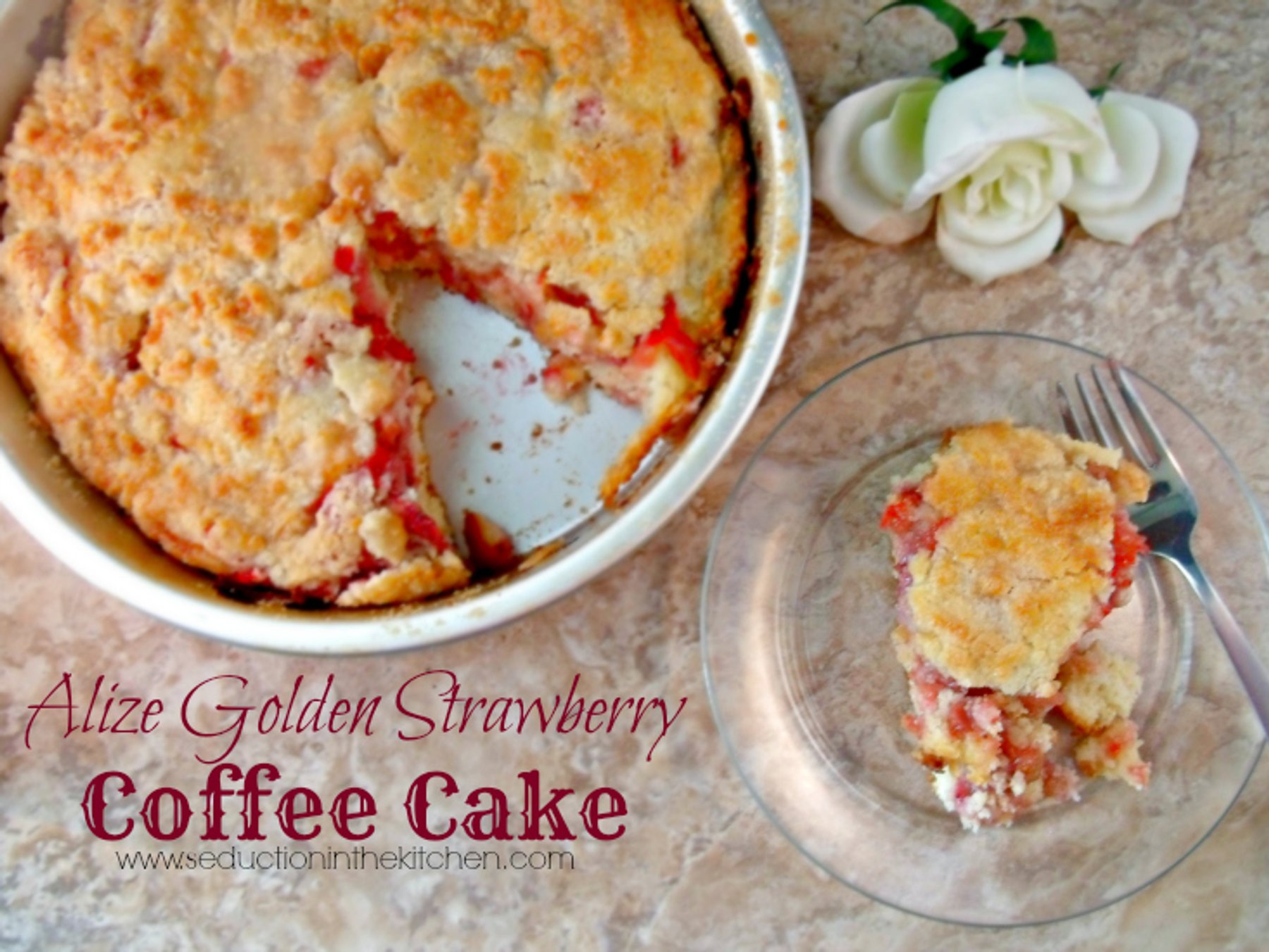 In a bowl, add the sliced strawberries and add the Alize over them. Set them aside. Next in a large bowl, combine the flour, sugar, and baking powder. In another bowl, combine the egg, milk, extracts,...