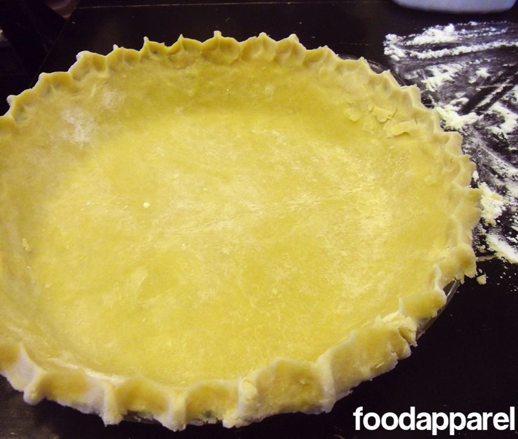 With clean hands, toss and crumble in the butter-flavored Crisco, until forming about pea-sized pellets. Do Not Overwork!